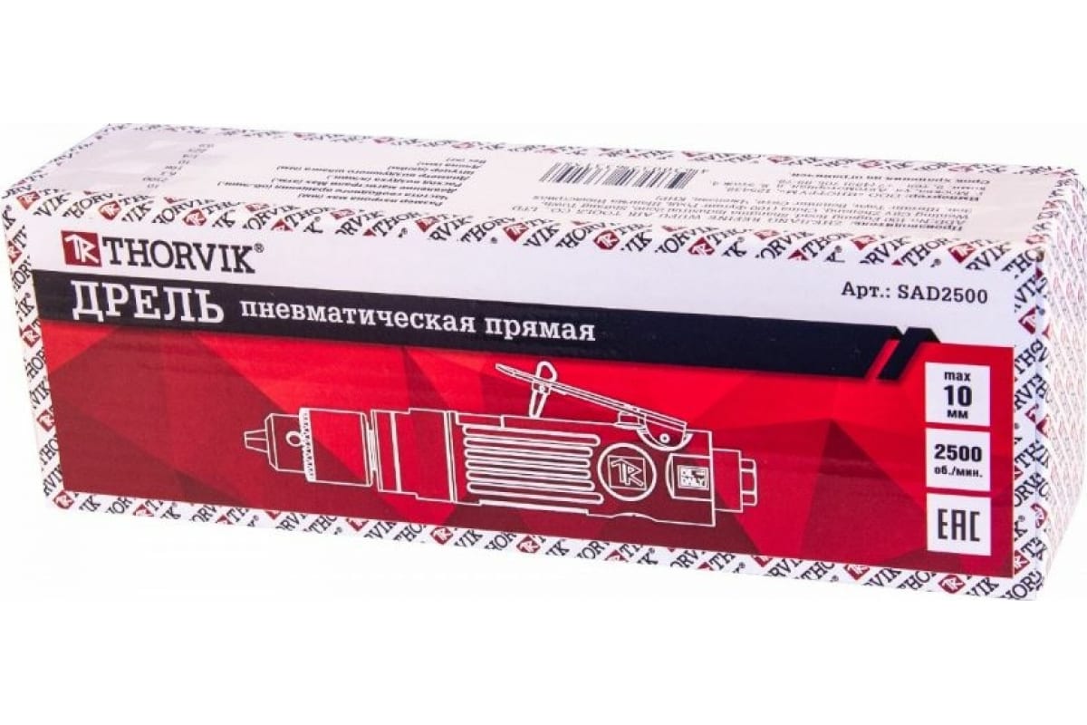 Пневматическая прямая дрель Thorvik SAD2500 52654 используется для сверления отверстий.