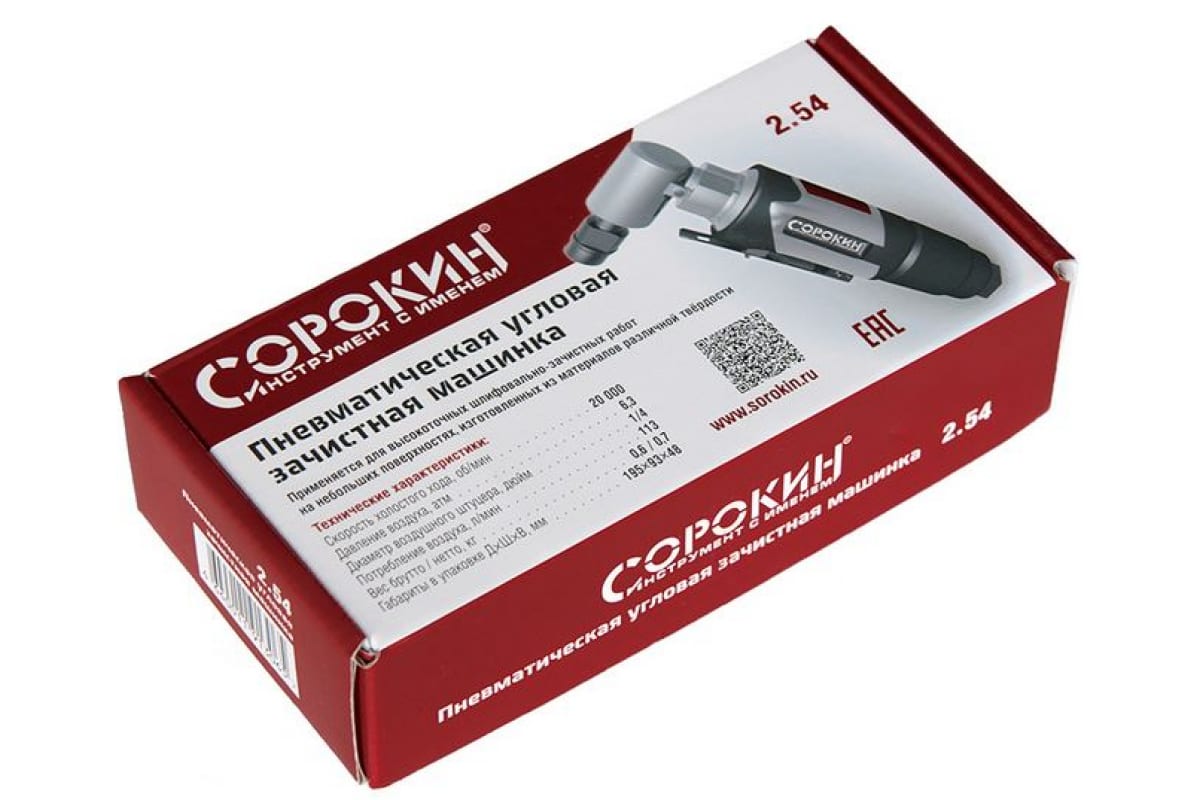 Пневматическая угловая зачистная машинка Сорокин 2.54 - компактный инструмент, который применяется для шлифования, снятия заусенцев, обработки швов и каналов. Диаметр воздушного штуцера - 1/4 дюйма.