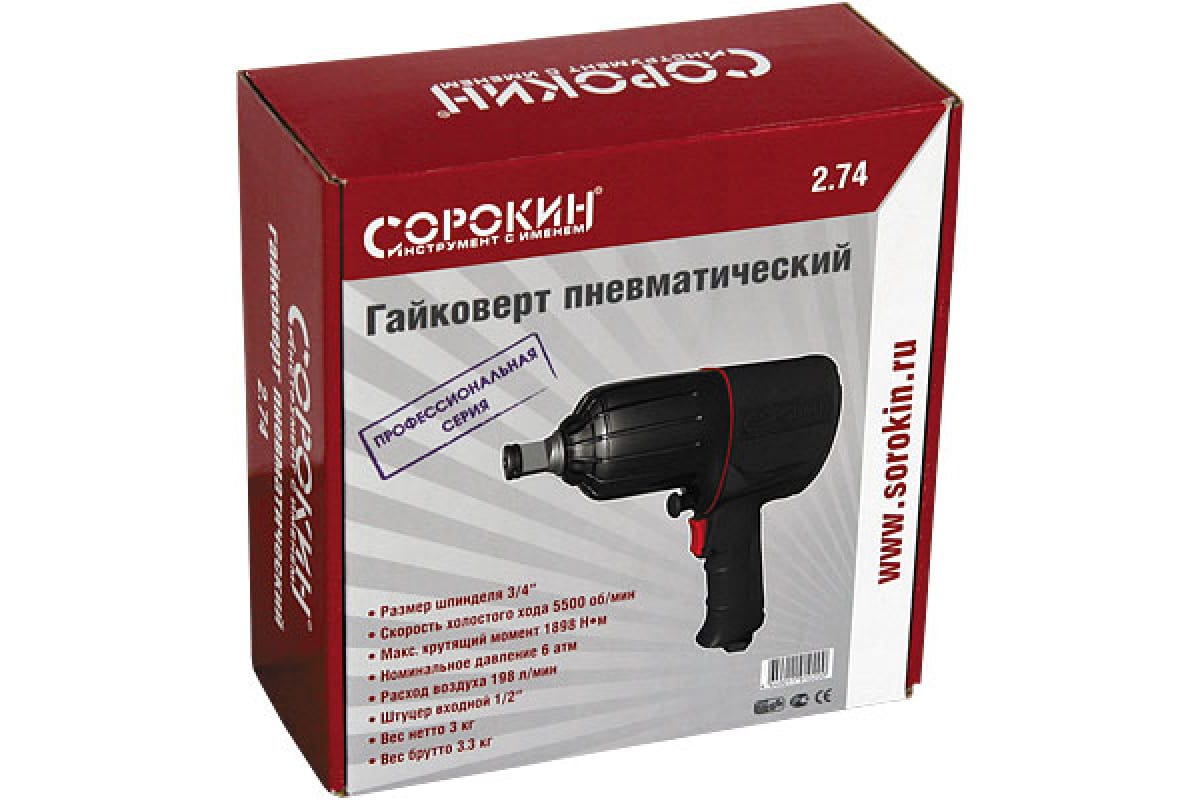 Пневматический гайковерт Сорокин 2.74 применяется в производствах, ремонтных мастерских или автосервисах для легкого закручивания и откручивания гаек и болтов. Эксплуатация инструмента возможна только при наличии воздушной магистрали с давлением воздуха не ниже шести атмосфер, или компрессора такой же мощности и производительностью не ниже 198 л/мин.