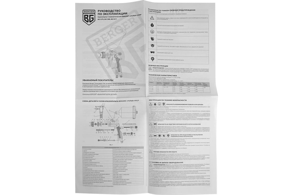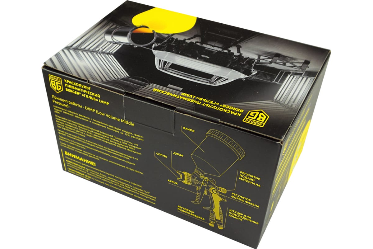 Пневматический краскопульт Berger BG ГЕЛЬБ LVMP 1.4 мм BG1380 прост и удобен в использовании.