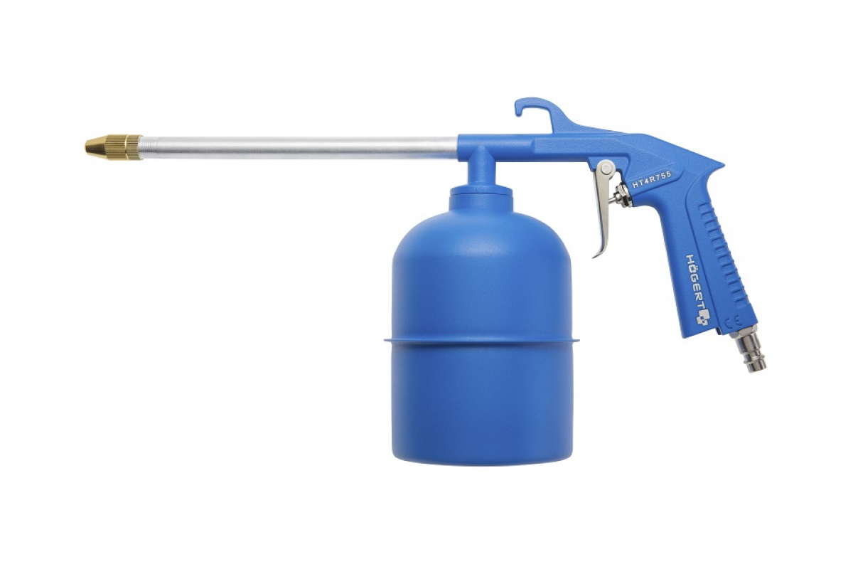 Пневматический моечный мобильный пистолет HOEGERT TECHNIK 900 мл HT4R755 используется для промывки деталей различных форм и размеров. Может применяться как пульверизатор.
