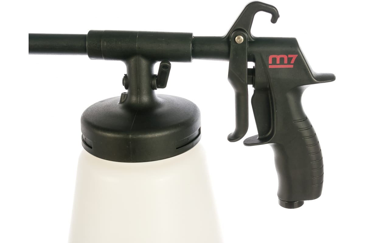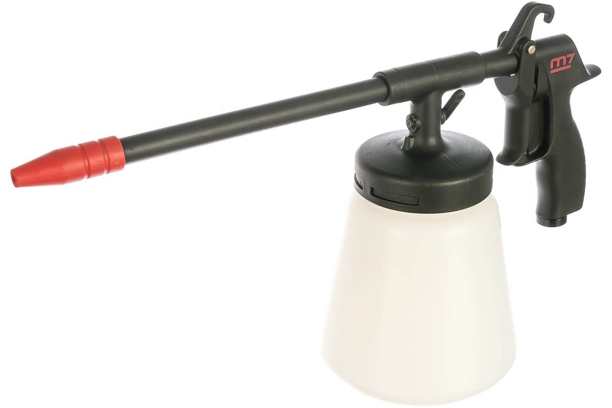 Пневматический моечный пистолет MIGHTY SEVEN SX-1615 - инструмент для очистки различных поверхностей, химчистки салона автомобиля, нанесения защитных составов. Оснащен пластиковым бачком объемом 1 литр. Подходит для различных химических средств как органического, так и неорганического происхождения.