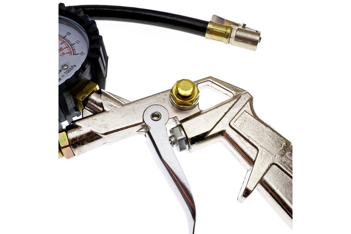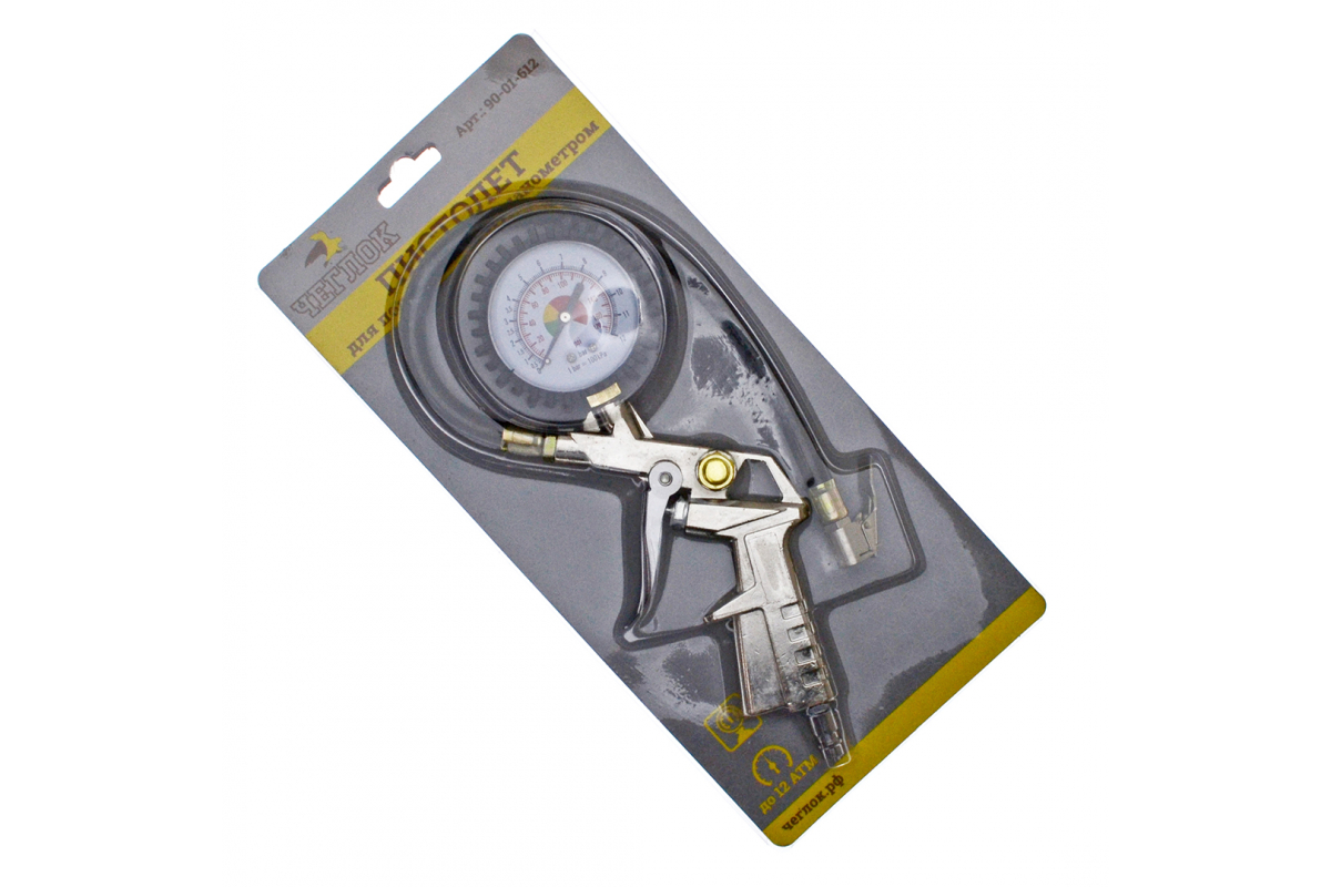 Пневматический пистолет ЧЕГЛОК для подкачки шин, с манометром до 12 атм., 90-01-612 используется для наполнения шин и прочих емкостей воздухом.