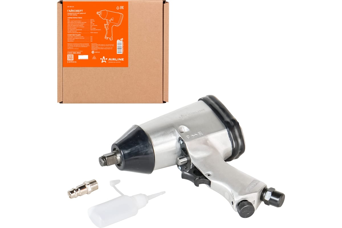 Пневматический ударный гайковерт Airline 1/2 DR AT-IW-01 применяется для механизации слесарно-монтажных работ для затяжки (закручивания) или ослабления (откручивания) особонагруженных и осложненных резьбовых соединений с высокой скоростью, мощностью, дифференцированным крутящим моментом и низкими затратами энергии и физических сил оператора.