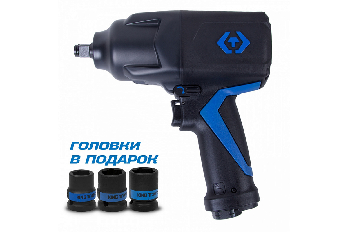 Пневматический ударный гайковерт KING TONY 1/2", в комплекте 3 торцевые головки P33481-095B предназначен для работы с резьбовым крепежом в автосервисах, производственных цехах, ремонтных мастерских.