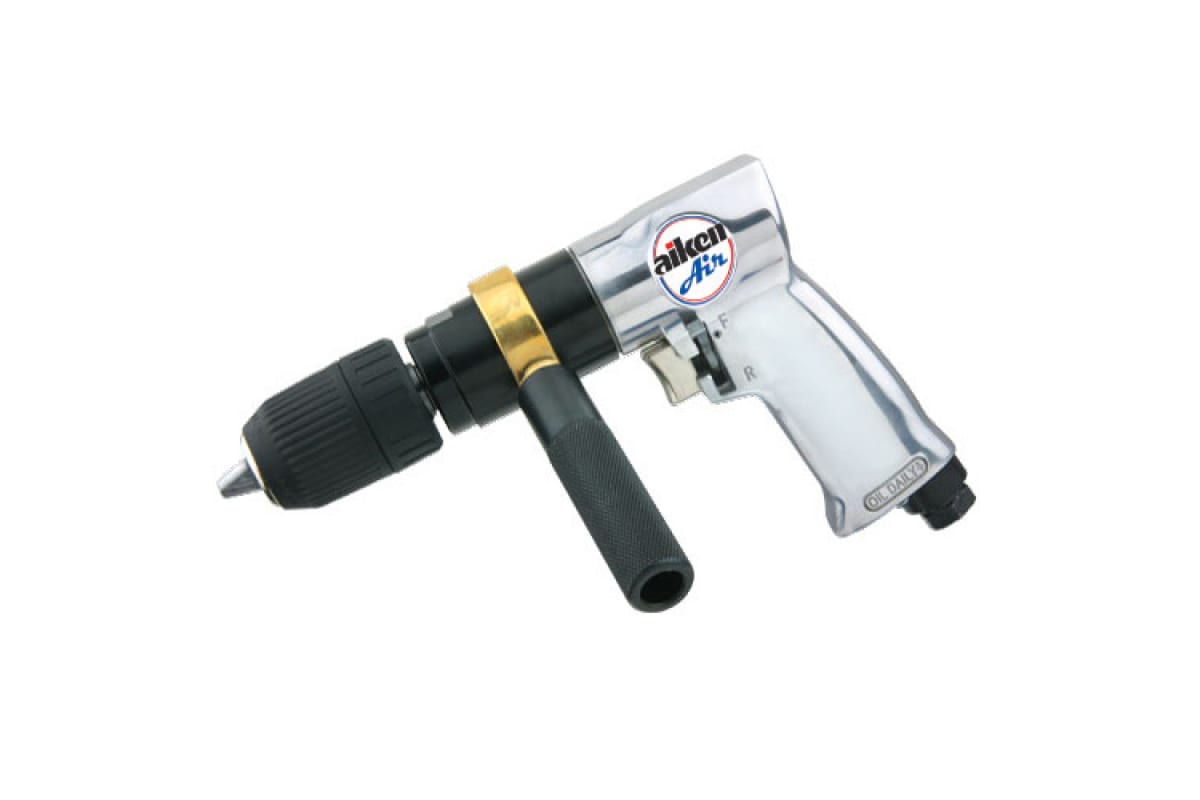 Пневмодрель AIKEN MFD 010/057-2 140201006 предназначена для сверления отверстий. Дополнительная рукоятка предусмотрена для надежного удержания инструмента при работе с наиболее твердыми резьбовыми соединениями. Модель оснащена быстрозажимным патроном диаметром 13 мм для быстрой и легкой замены оснастки. Также стоит отметить внушительный рабочий ресурс и способность длительное время работать без перегрузки.