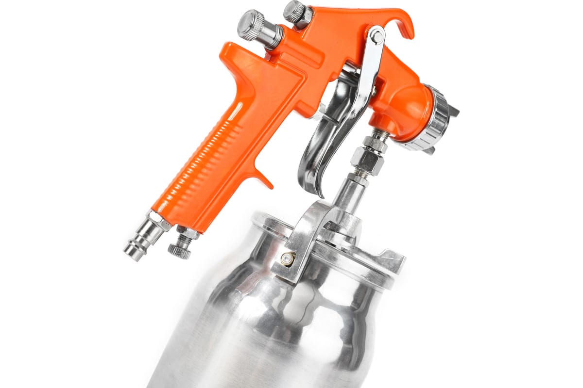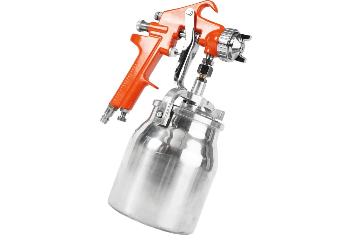 Бак краскопульта располагается снизу и способен вместить в себя 1 литр краски.