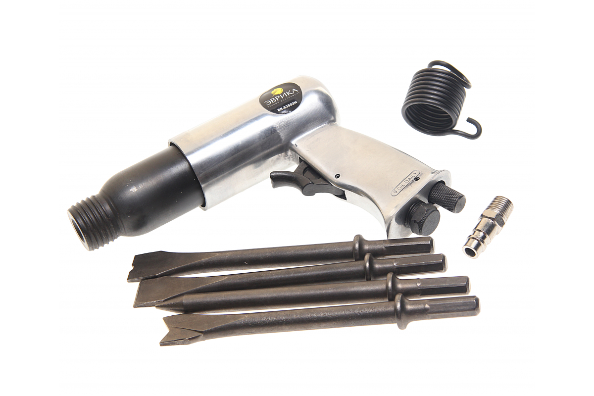 Пневмомолоток с набором зубил ЭВРИКА ER-83502H используется при демонтаже различных конструкций. Комплектуется несколькими насадками, благодаря чему можно сразу приступить к работе.