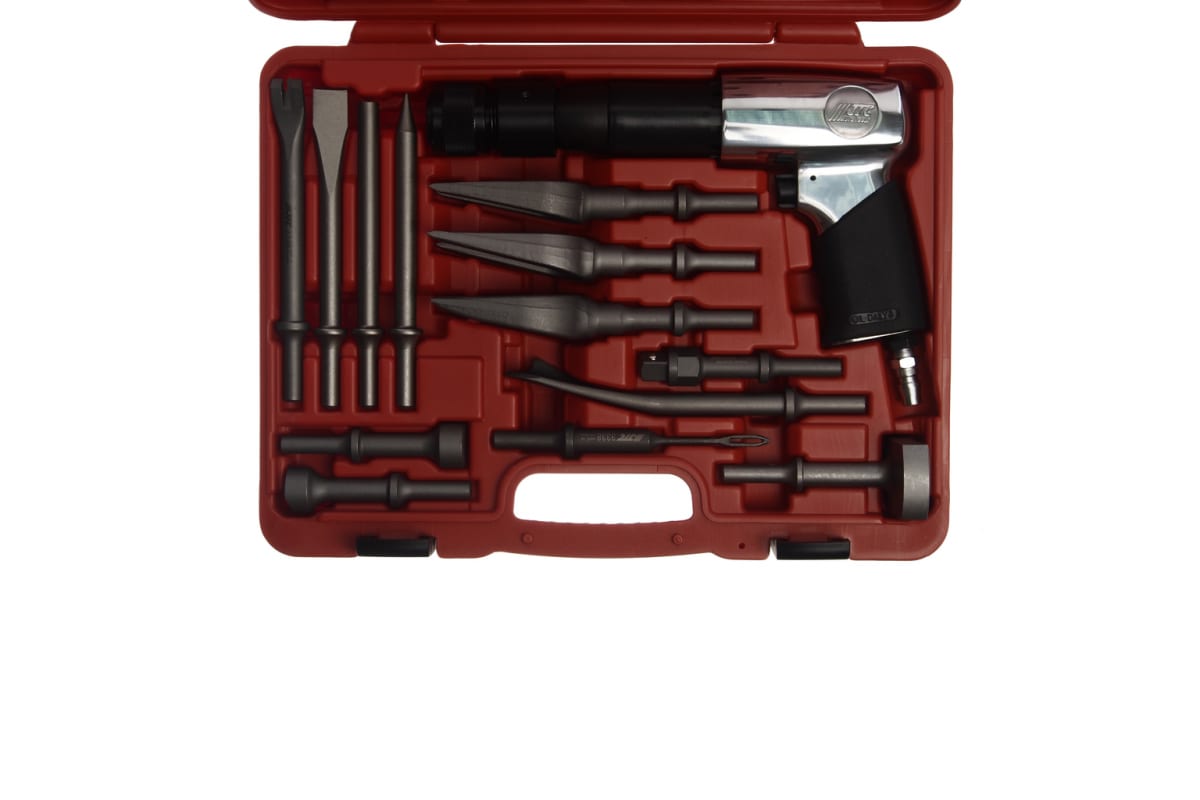 Пневмомолоток с набором зубил JTC 15 предметов 3340 применяется для демонтажных работ с твердым материалом.