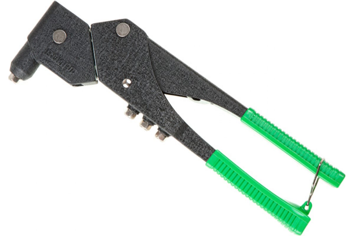 Заклепочник ВОЛАТ поворотный 34015-12 служит для стягивания листовых материалов или приклепывания листов металла к профильному основанию.
