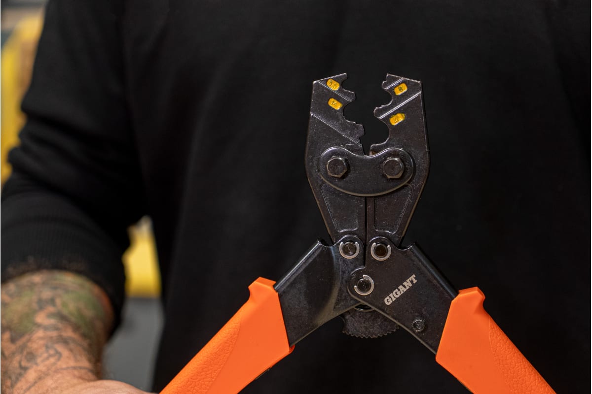 Пресс-клещи для обжима наконечников Gigant 5,5 - 25 мм² GECT-07 находит применение в мастерских и при прокладке различных сетей. Инструмент предназначен для неизолированных гильз ГМЛ 5.5 - 22 мм2. Оборудован удобными нескользящими рукоятками, которые равномерно распределяют давление по ладони в процессе эксплуатации.