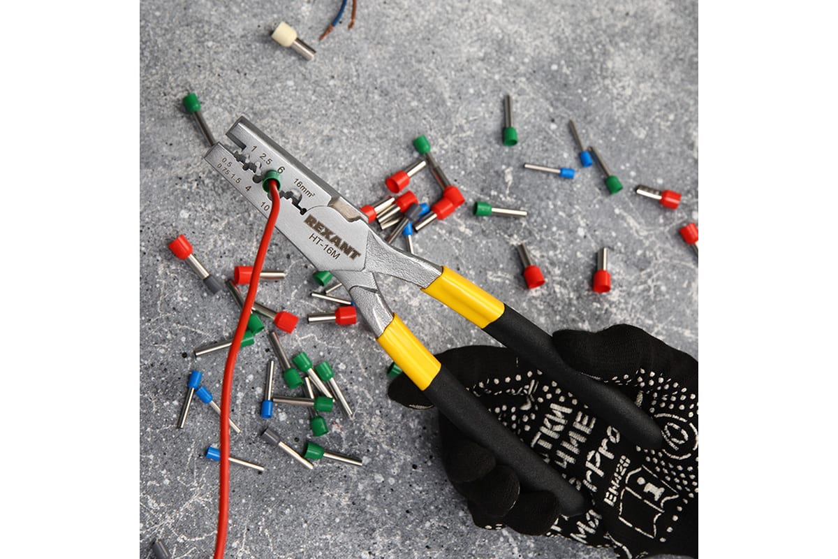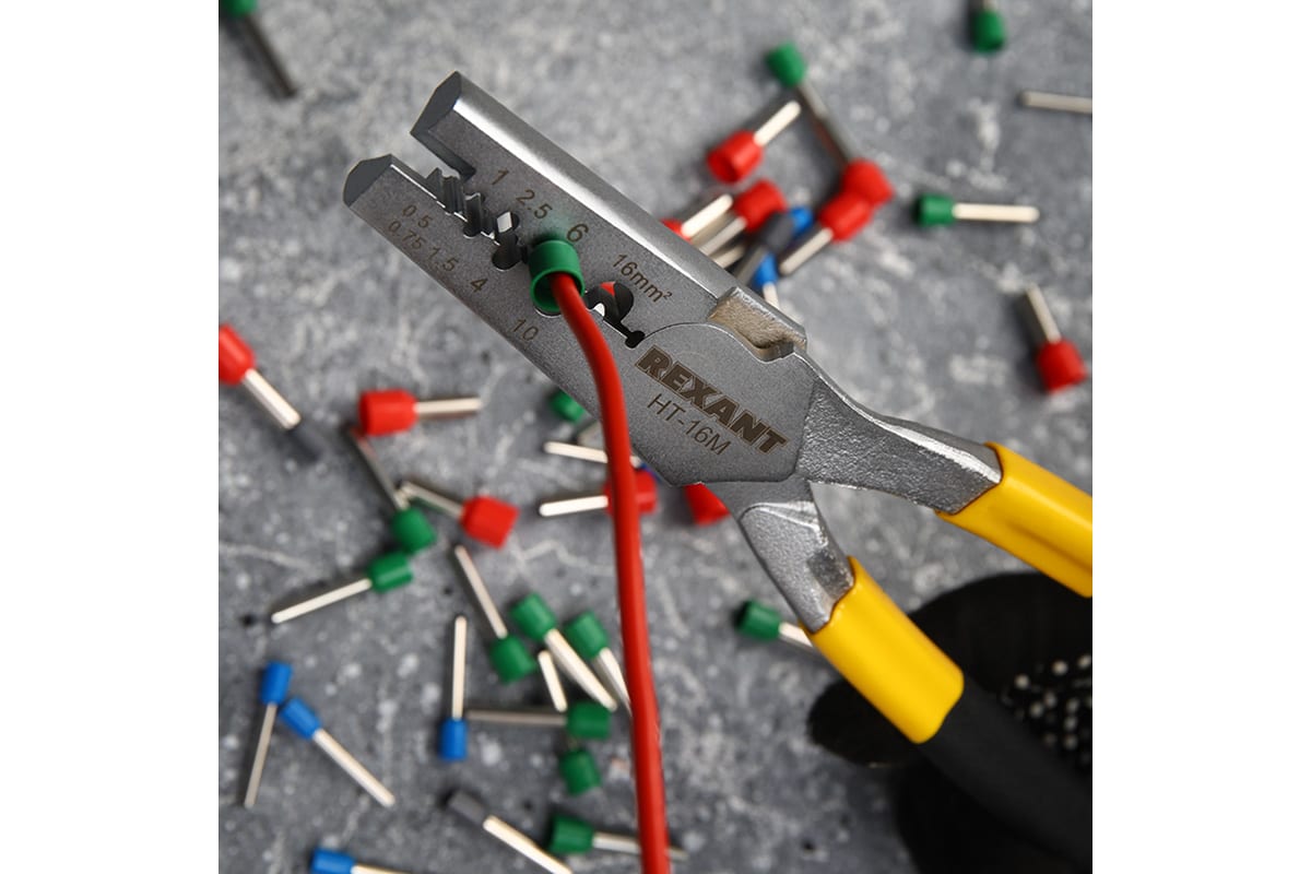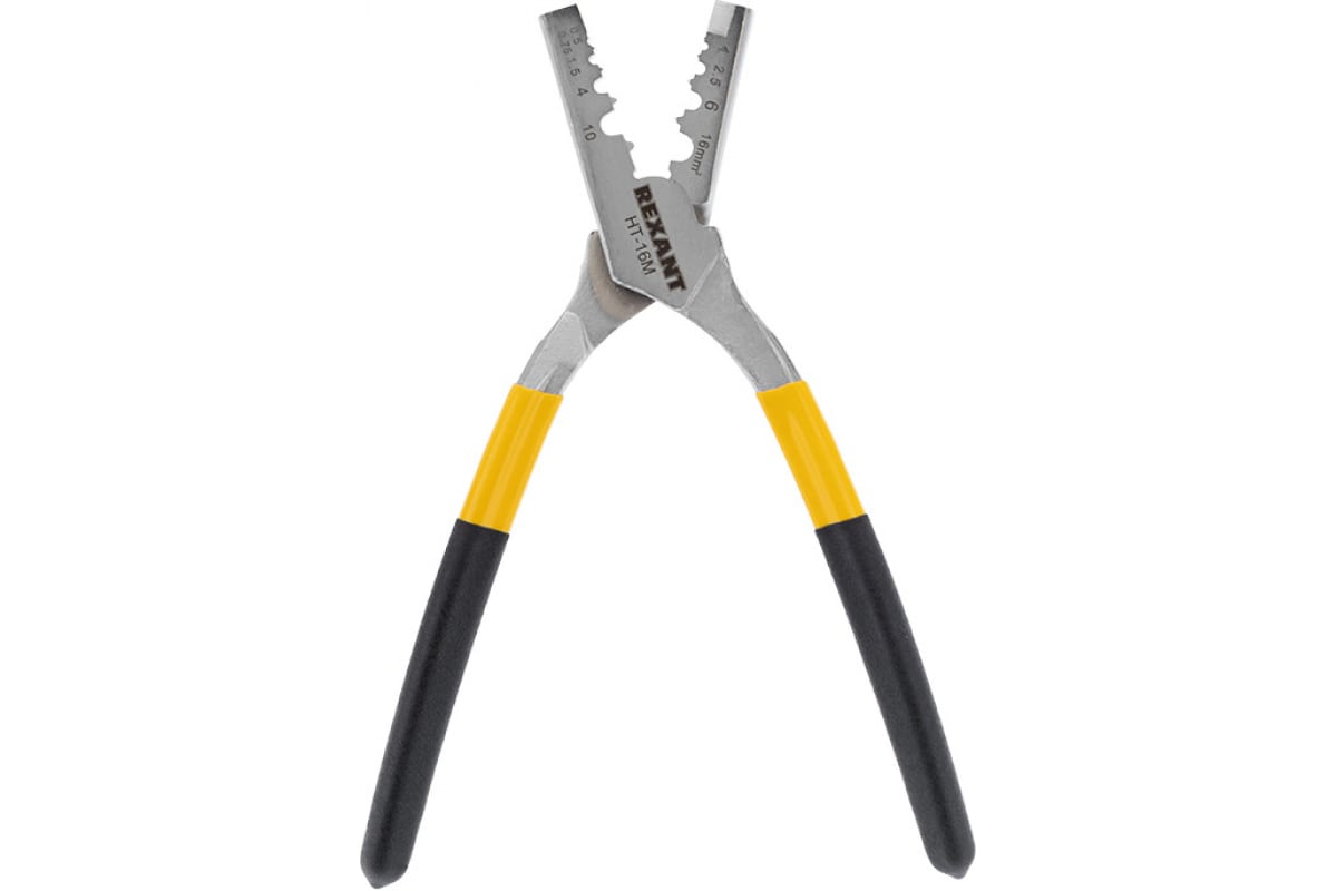 Пресс-клещи для обжима втулочных наконечников REXANT 0,5-16 мм² HT-16M 12-3208 предназначены для опрессовки изолированных и неизолированных втулочных наконечников. Конструкция охватывает широкий диапазон обжимаемых наконечников, для удобства на губках изделия нанесена справочная маркировка.