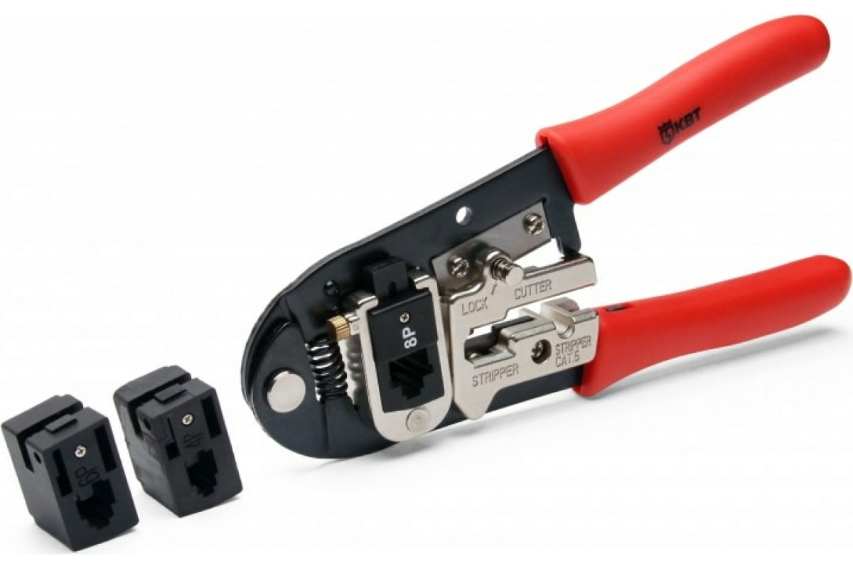 - Эргономичные рукоятки пресс-клещей для RJ-разъемов КВТ JT-01B 69280 из нескользящей термопластрезины;