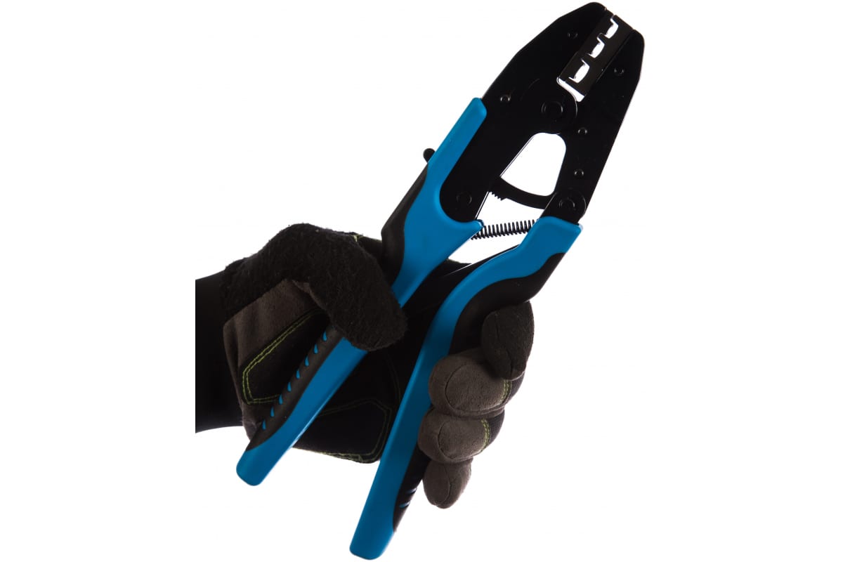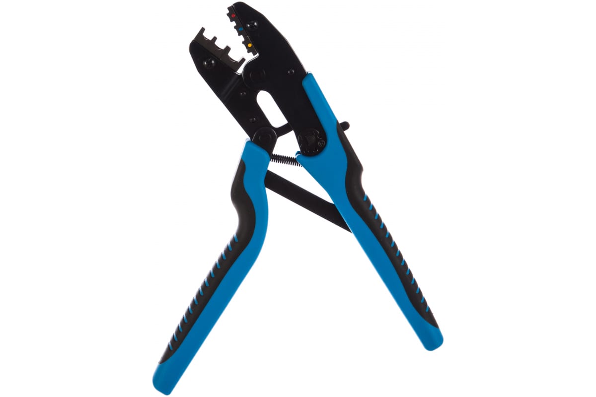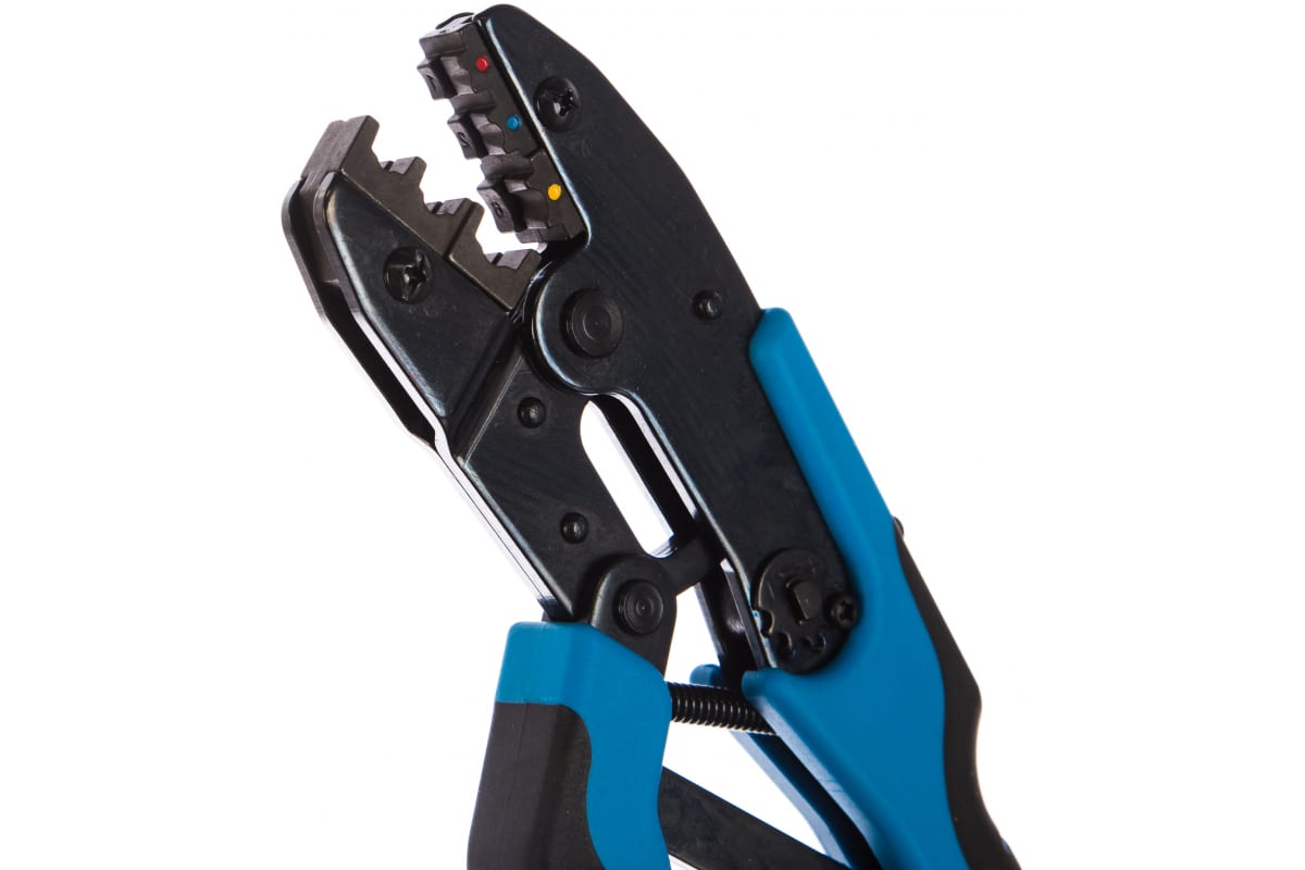 Пресс-клещи КВТ CTB-01 55910 надежны и удобны в работе. Они пригодятся для опрессовки изолированных наконечников и разъемов НКИ, НВИ, НИК, НШКИ, НШПИ, ГСИ, РППИ-М, РПИ-П, РПИ-М, РШИ-П, РШИ-М, РПИ-О и РПИ-НТ. Инструмент имеет храповый механизм, который обеспечивает блокировку обратного хода до прекращения полного цикла опрессовки. Благодаря удобным удлиненным рукояткам можно работать двумя руками.