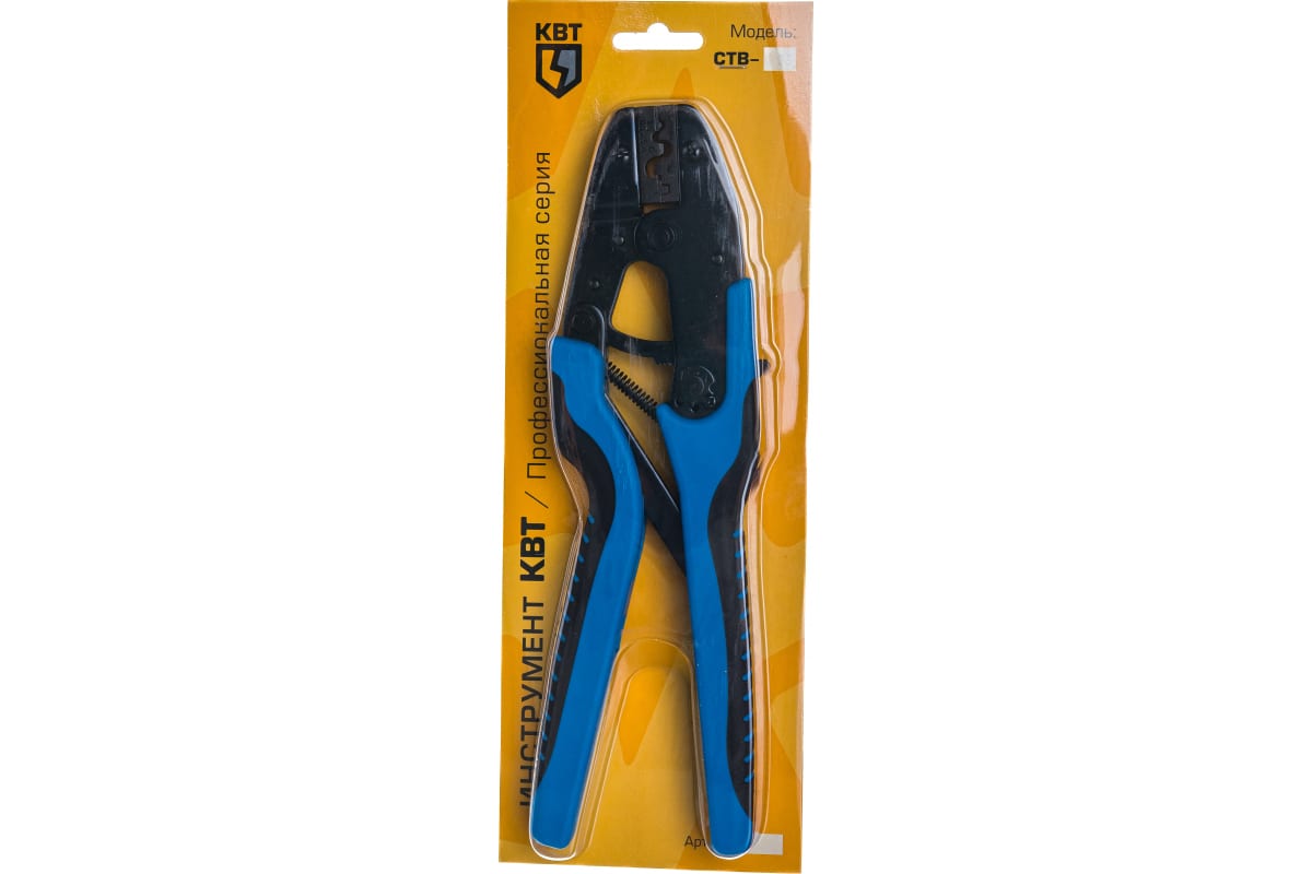 Пресс-клещи КВТ CTB-05 55914 пригодятся при электромонтажных работах. Они используются для обработки неизолированных медных наконечников и гильз типа ТМЛ, ТМЛс, ТМ, ГМЛ и ГМЛ(о), а также наборов СОТК. Конструкция инструмента оснащена храповым механизмом, благодаря которому достигается блокировка обратного хода до завершения процесса опрессовки. Удлиненные рукоятки удобно лежат в руке, обеспечивая комфортную работу.