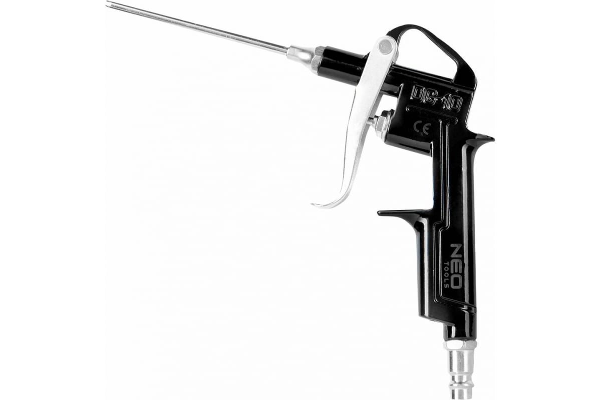 Продувочный пистолет NEO Tools 14-710 подходит для универсального использования в мастерских, например, для очистки фильтров, продувки загрязнений, сушки сжатым воздухом.