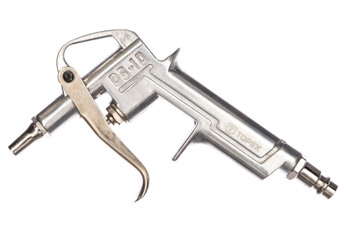 Продувочный пистолет с коротким соплом TOPEX 75M401 используется в гараже, в автомастерских. Применяется для продувки и очистки различных поверхностей.