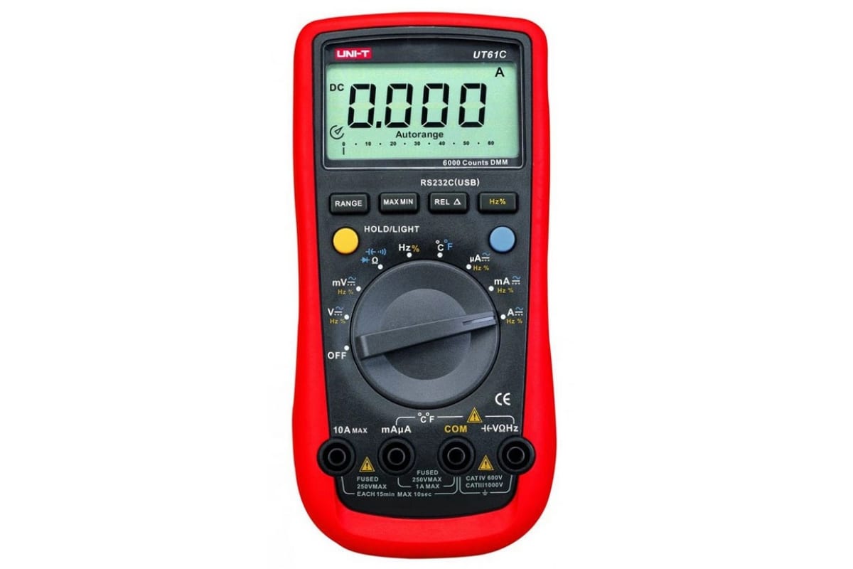 Профессиональный мультиметр UNI-T UT61C 13-0046 имеет практичный и современный дизайн. Подходит для измерения напряжения, силы тока, сопротивления, емкости, частоты и температуры. Обладает высоким классом точности.