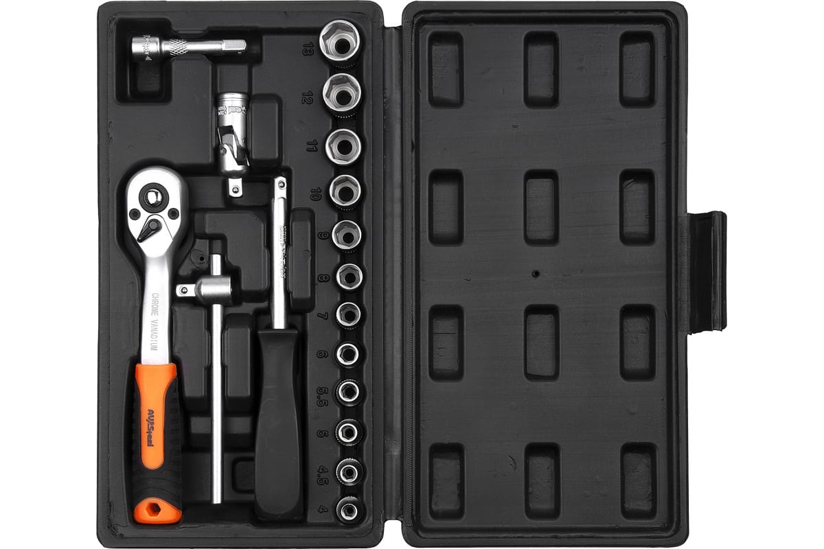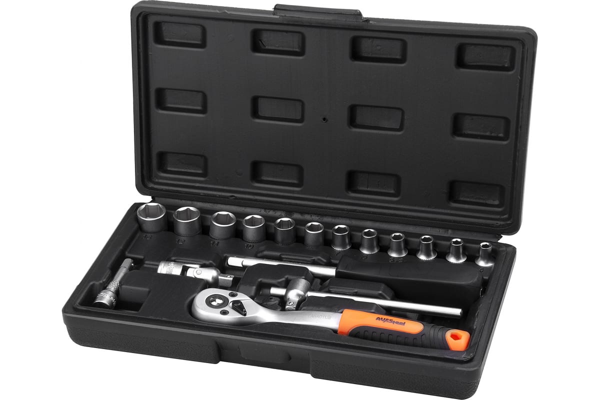 Профессиональный набор инструментов 17 предметов AV Steel AV-011017 разработан для упрощения монтажа конструкций с шестигранным крепежом различного размера.
