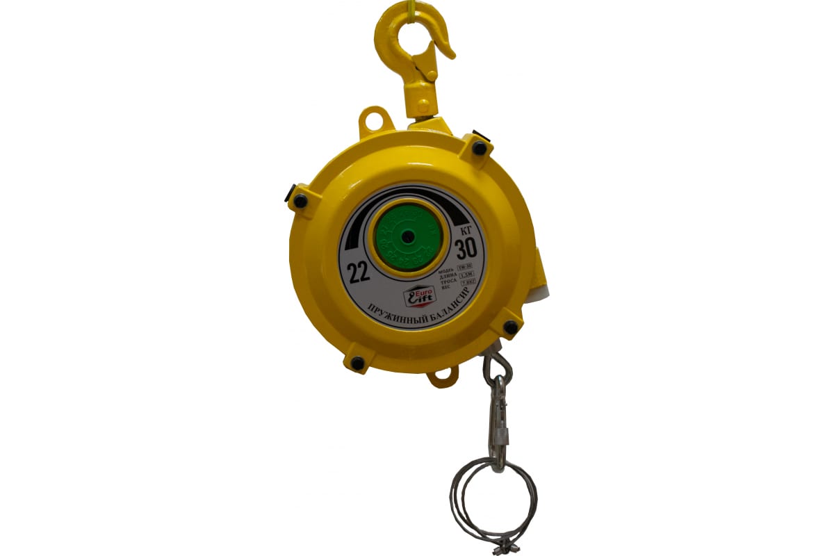 Пружинный балансир EURO-LIFT нагрузка 22-30 кг, длина троса 1,5м, вес 7,8кг 00018545 используется в ремонтных и производственных мастерских для подвешивания различного инструмента, осветительных приборов, а также других грузов. Предусмотрено изменение высоты подвеса в ходе работы без лишних физических усилий.