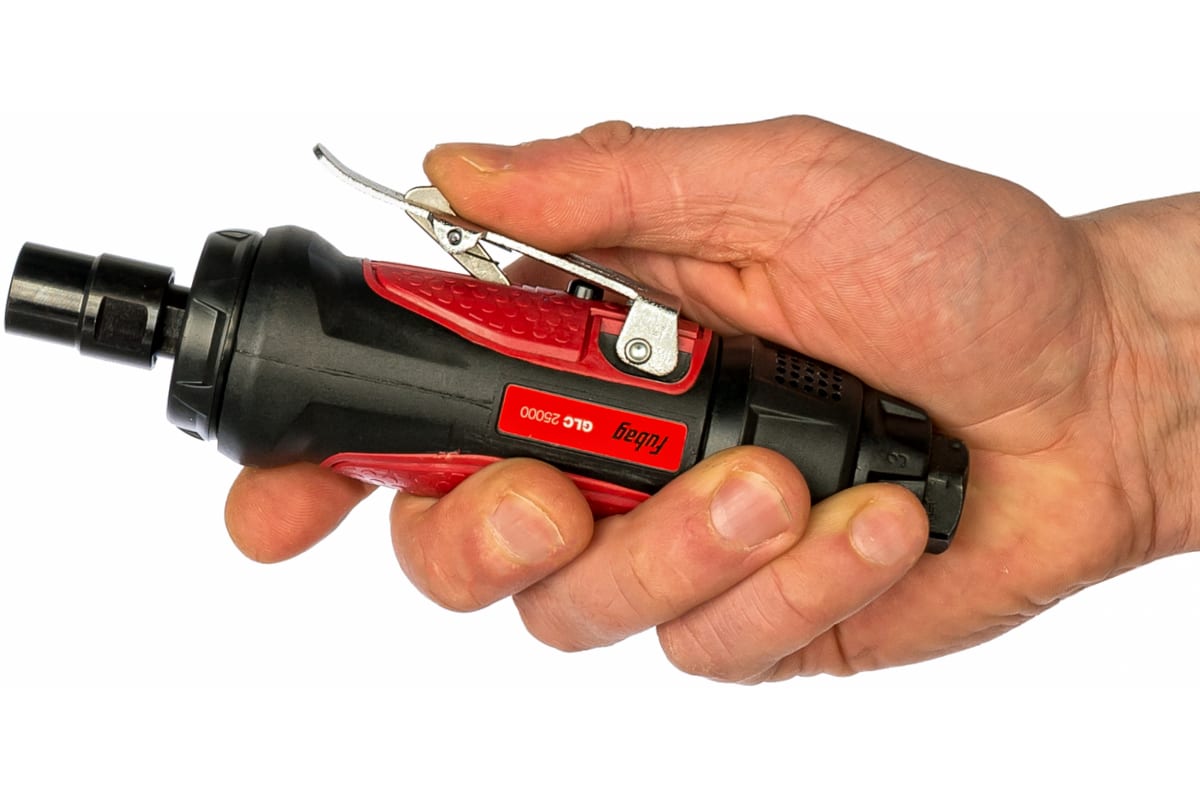 Прямая пневмошлифмашина FUBAG GLC 25000 100410 применяется для работ по зачистке и обработке сварных швов, снятия заусенцев и т.д. Она имеет прочный корпус из композитного материала и оснащена резиновыми накладками, снижающими уровень вибрации. Принцип работы на сжатом воздухе гарантирует высокий рабочий ресурс инструмента и обеспечивает минимальную пожаро- и взрывоопасность. Данная модель комплектуется цангой размером 6 мм.