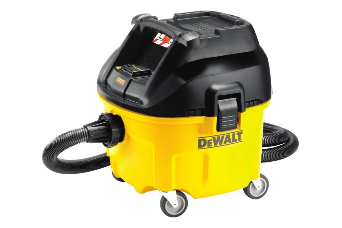 Пылесос DeWalt DWV 900 L предзназначен для всасывания сухого мусора и влажных отходов. Он имеет ударопрочный корпус, что особенно важно при работе на строительной площадке. Четыре колеса обеспечивают быстрое и удобное перемещение аппарата. В верхней части корпуса расположена рукоятка для удобной переноски пылесоса. Данная модель работает с малоопасной пылью класса L.