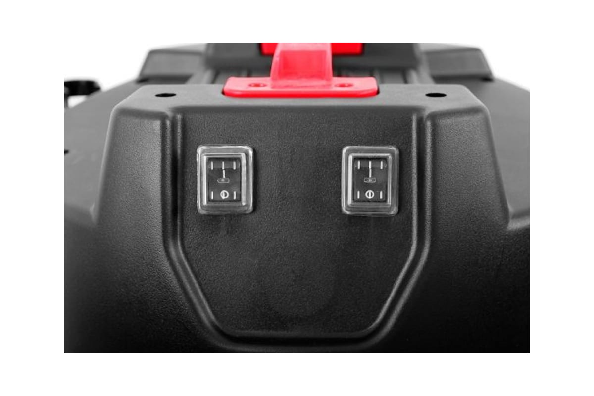 - Бак имеет подвижное крепление к транспортировочной ручке и может опрокидываться на 90 градусов;