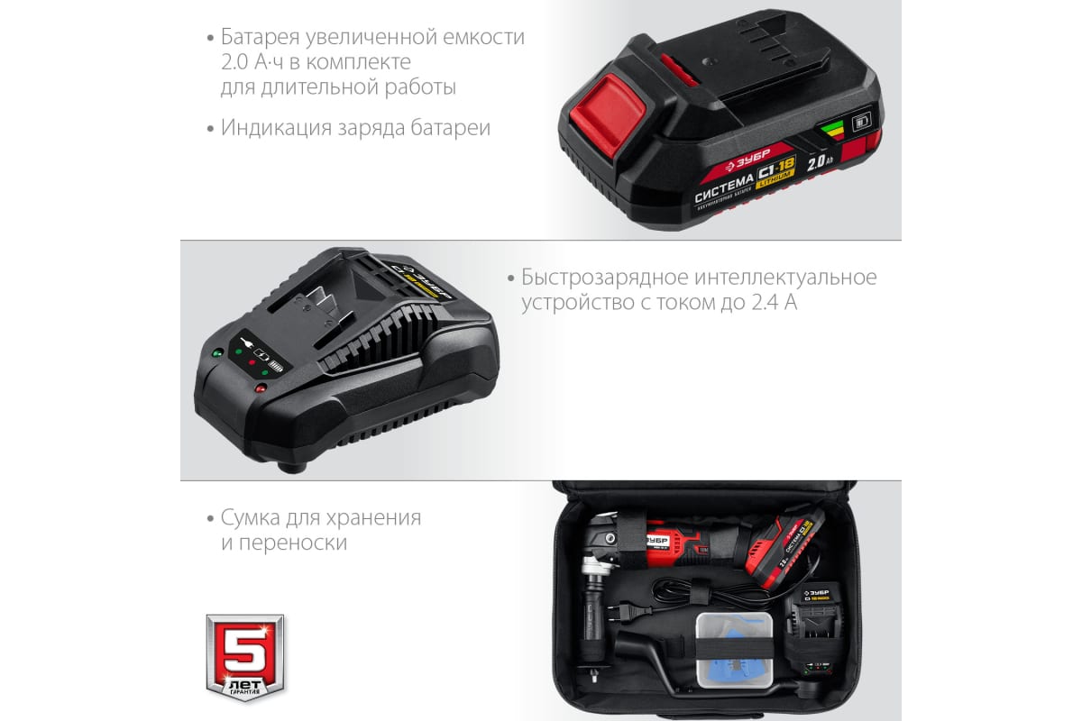 Преимущества ЗУБР МФИ-18-21- Единая аккумуляторная система С1-18В для множества инструментов