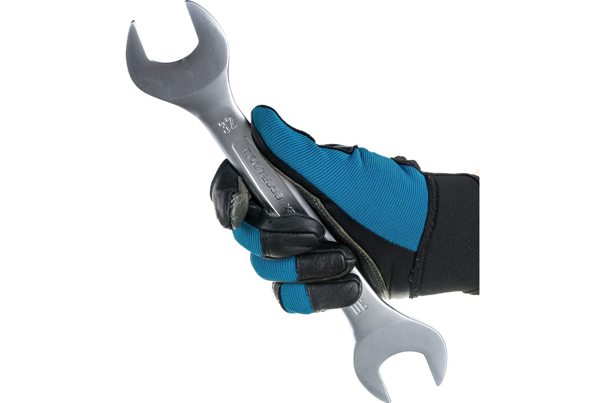 Рожковый гаечный ключ 30 x 32 мм Зубр 27010-30-32_z01 удобен в использовании за счет классической формы с наклоненными рожковыми головками.