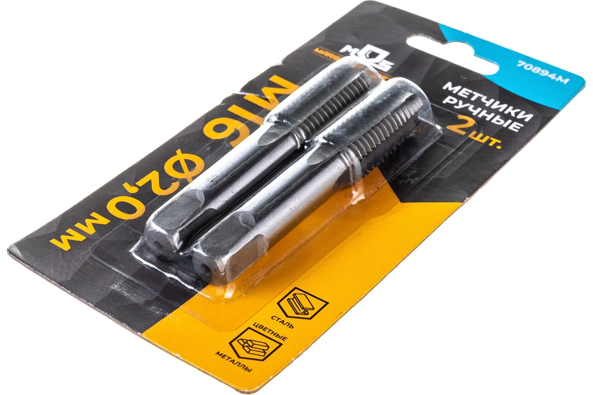 Ручные метчики, комплект 2 шт. М16 х 2.0 мм MOS 70894М используется для нарезания резьбы со средним шагом.