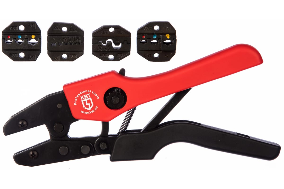 Ручные пресс-клещи КВТ СТК+4, 4 матрицы в сумке 75907 имеет в комплекте 4 матрицы для опрессовки изолированных и неизолированных гильз, наконечников и разъемов. Клещи оснащены храповым механизмом и имеют усиленную конструкцию. Удобные эргономичные рукоятки обеспечивают надежность удержания. Матрицы можно без труда менять при необходимости. Размер инструмента 220 мм.