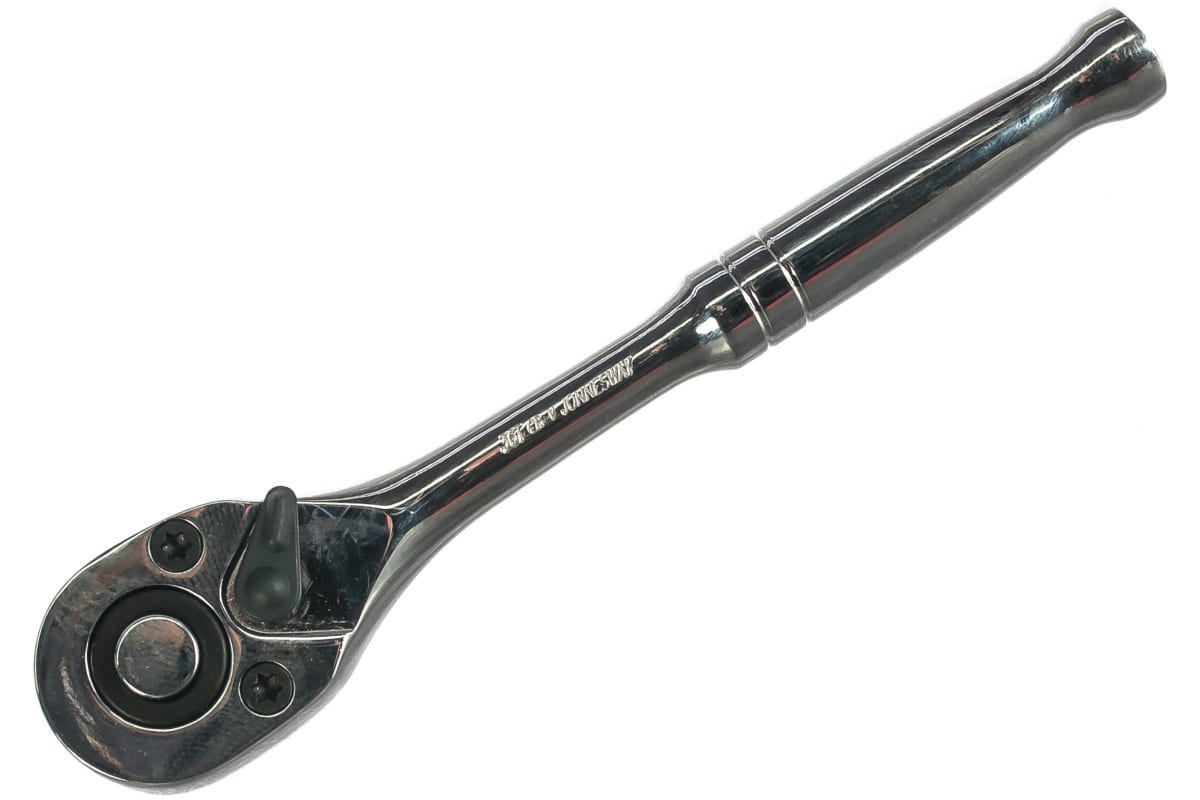 Рукоятка трещоточная 1/4д.DR, 36 зубцов, 125 мм R2902A - инструмент для работы с торцовочными головками, посадочное отверстие которых составляет 1/4д. Конструкция изготовлена из хромованадиевой стали, отличается высокой прочностью и долговечностью. Предусмотрен переключатель для изменения направления закручивания.