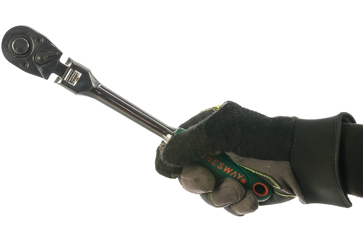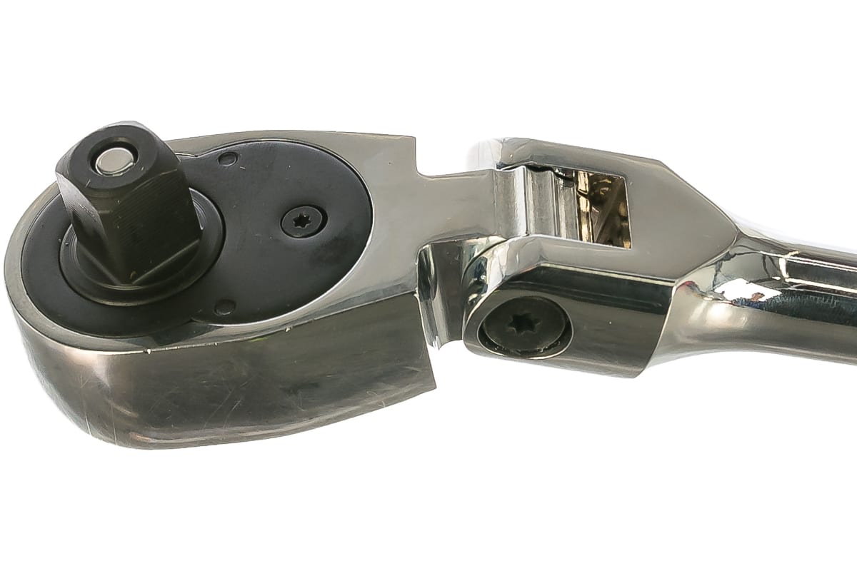 Рукоятка способствует надежному удержанию инструмента. Имеется переключатель для изменения направления вращения храпового механизма.