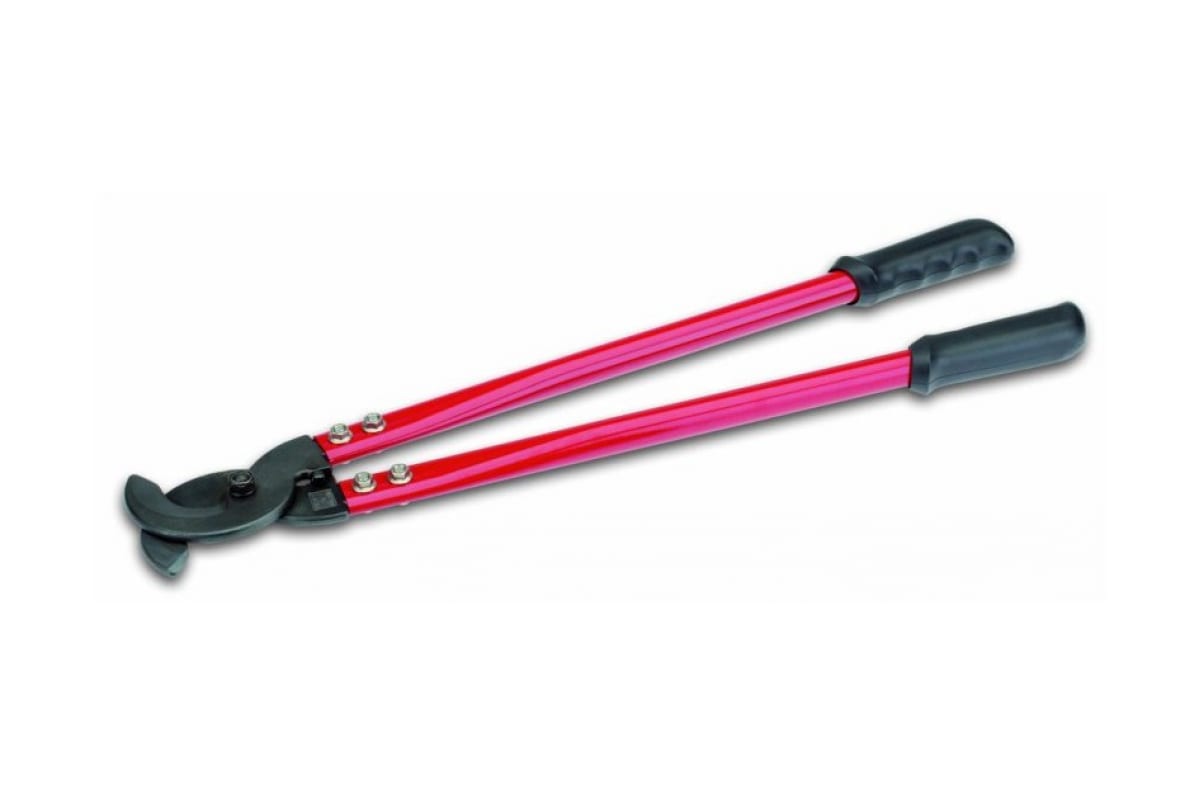 Рычажный кабелерез CIMCO 12 0157 используется для резки кабеля диаметром до 65 мм или сечением до 400 мм. Конструкция инструмента предусматривает смену режущей головки. Рукоятки кабелереза выполнены в виде стальных трубок с ПВХ-покрытием, что предотвращает проскальзывание рук при работе.
