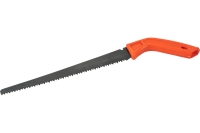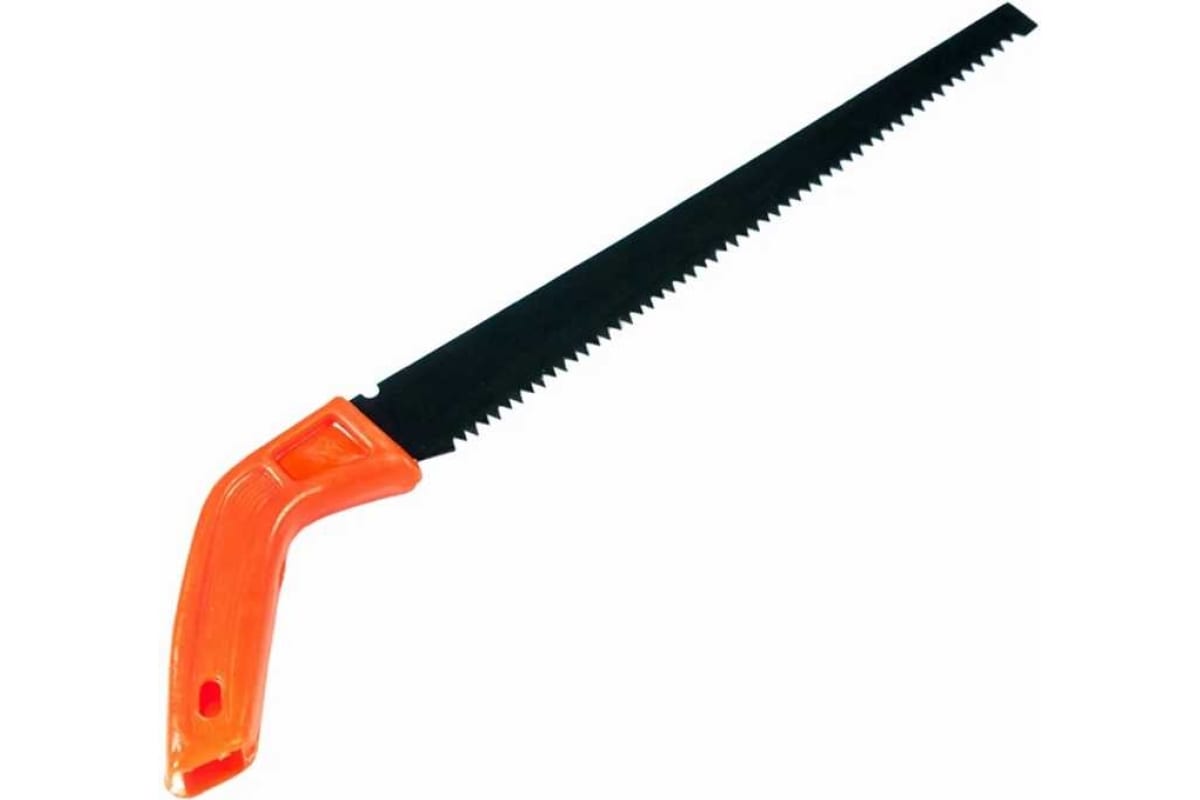 Садовая ножовка предназначена для поперечного распила сырой древесины. Полотно изготовлено из среднеуглеродистой стали и закалено до твердости 43-46 HRC, что обеспечивает легкий рез древесины.