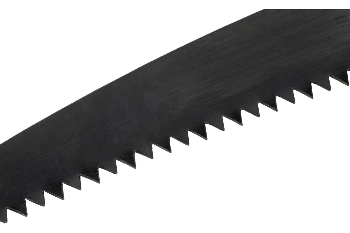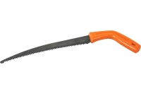 Садовая ножовка предназначена для поперечного распила сырой древесины. Полотно изготовлено из среднеуглеродистой стали и закалено до твердости 43-46 HRC, что обеспечивает легкий рез древесины.
