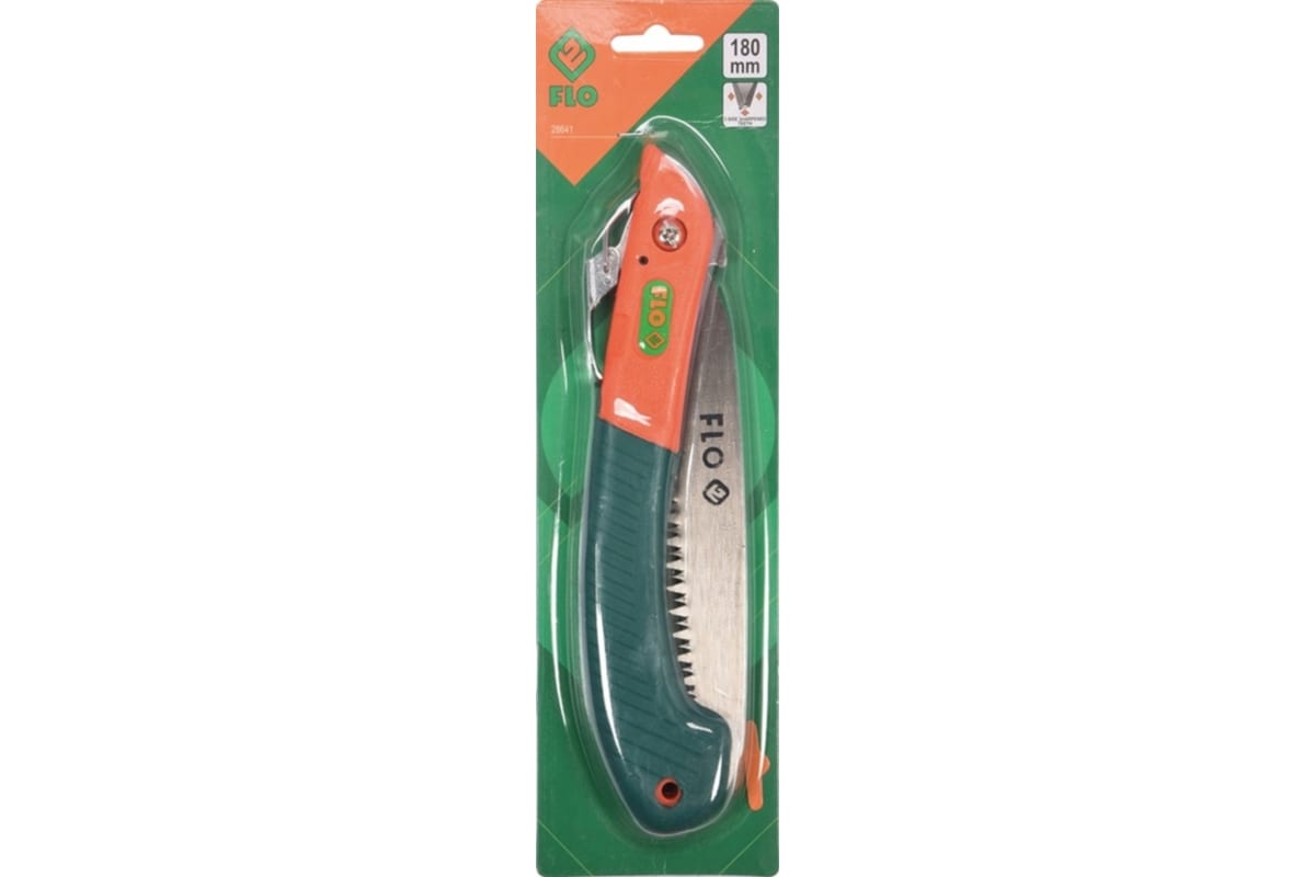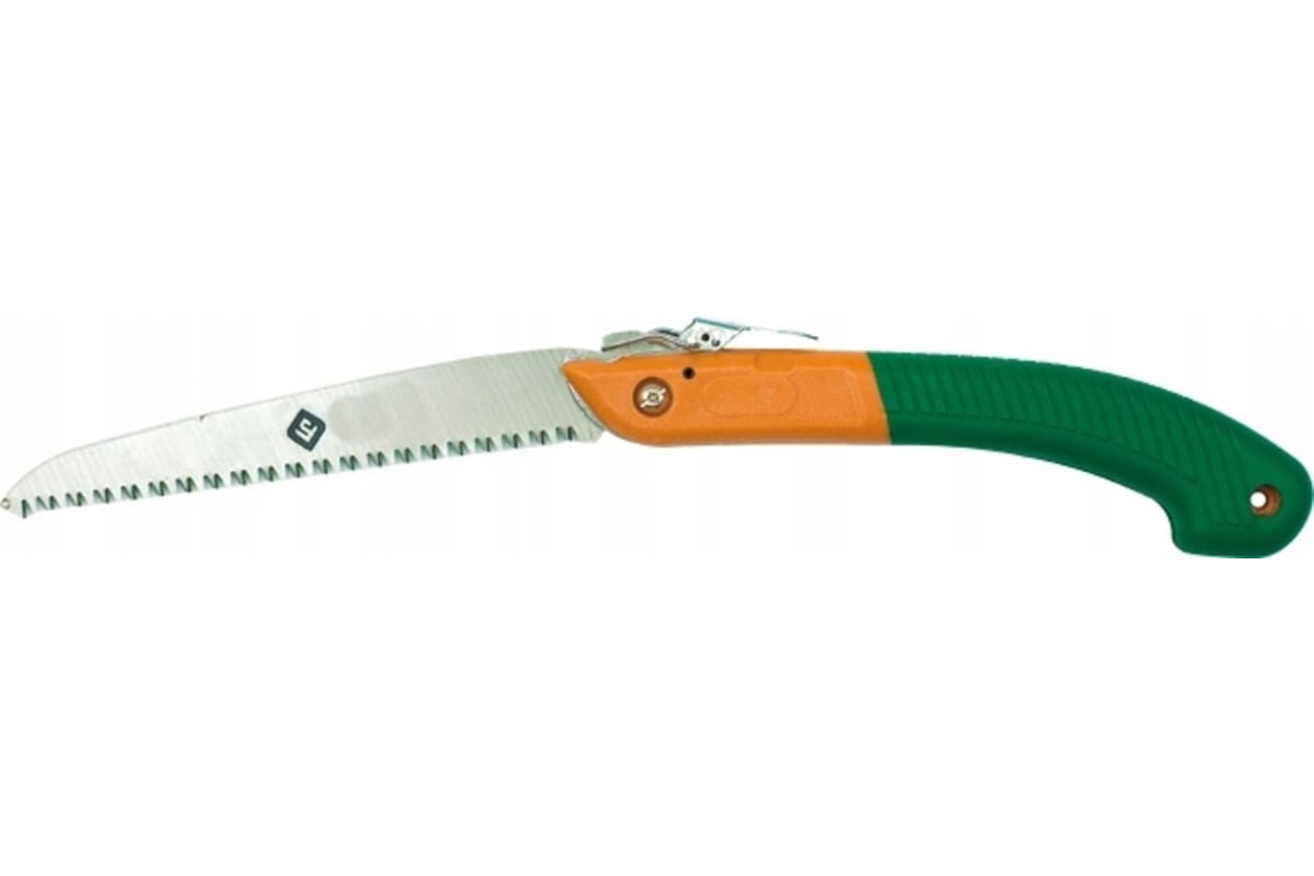 Складная обрезная пила. Пружинистое изогнутое лезвие со специально профилированными зубьями для обрезки веток, спрятанное в длинной пластиковой ручке. Отверстие в ручке облегчает хранение. Необходим в работе садовника. Пила имеет фиксатор лезвия