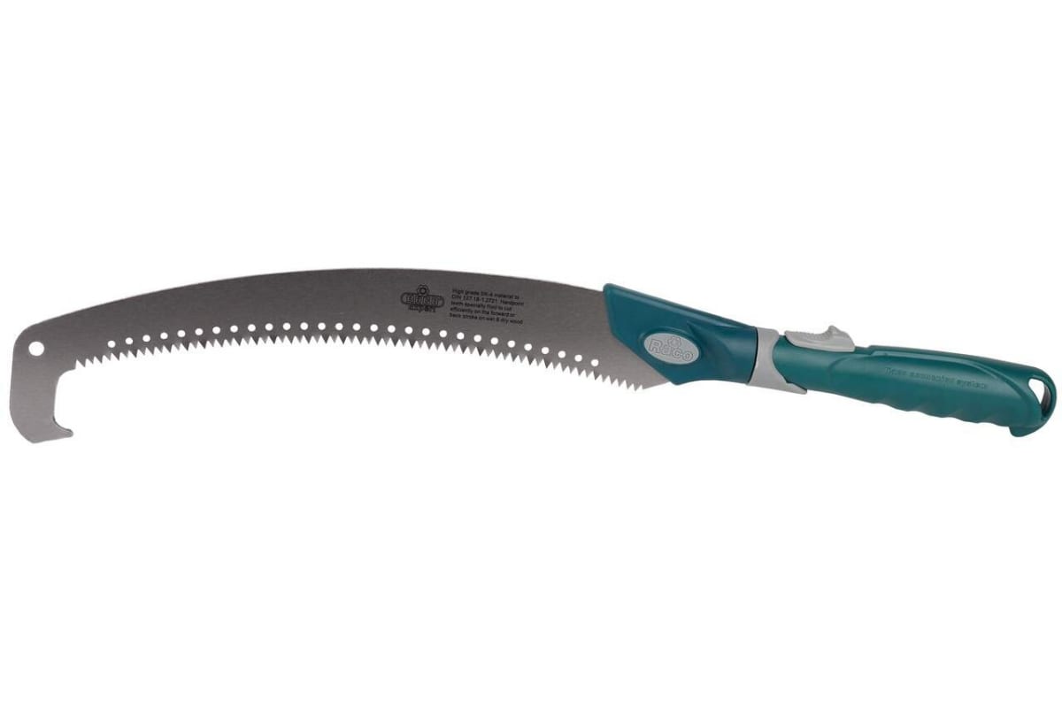 Садовая пила RACO 4216-53/337C с лезвием изогнутой формы быстро спиливает ветки деревьев,а крюком они легко удаляются. На полотно нанесено специальное покрытие для долгого срока службы. Есть возможность присоединения телескопической ручки, что удобно при спиливании веток у высоких деревьев. Зубья, прошедшие закалку, хорошо разведены, что обеспечивает меньшую усталость в работе. Ручка эргономичной формы имеет отверстие для удобства хранения.