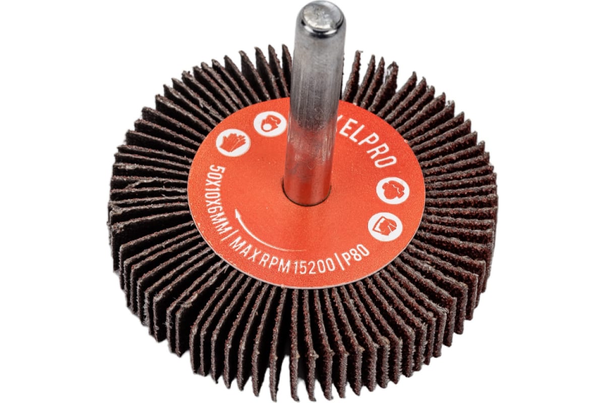 Щетка лепестковая абразивная ROXTOP на шпинделе 133506 предназначена для прямошлифовальных машин, дрелей и стационарных сверлильных станков.