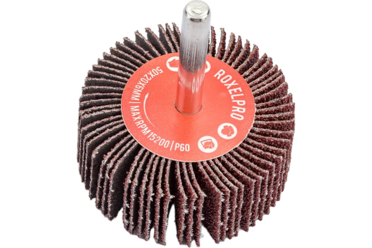 Щетка лепестковая абразивная ROXTOP на шпинделе 133525 предназначена для прямошлифовальных машин, дрелей и стационарных сверлильных станков.