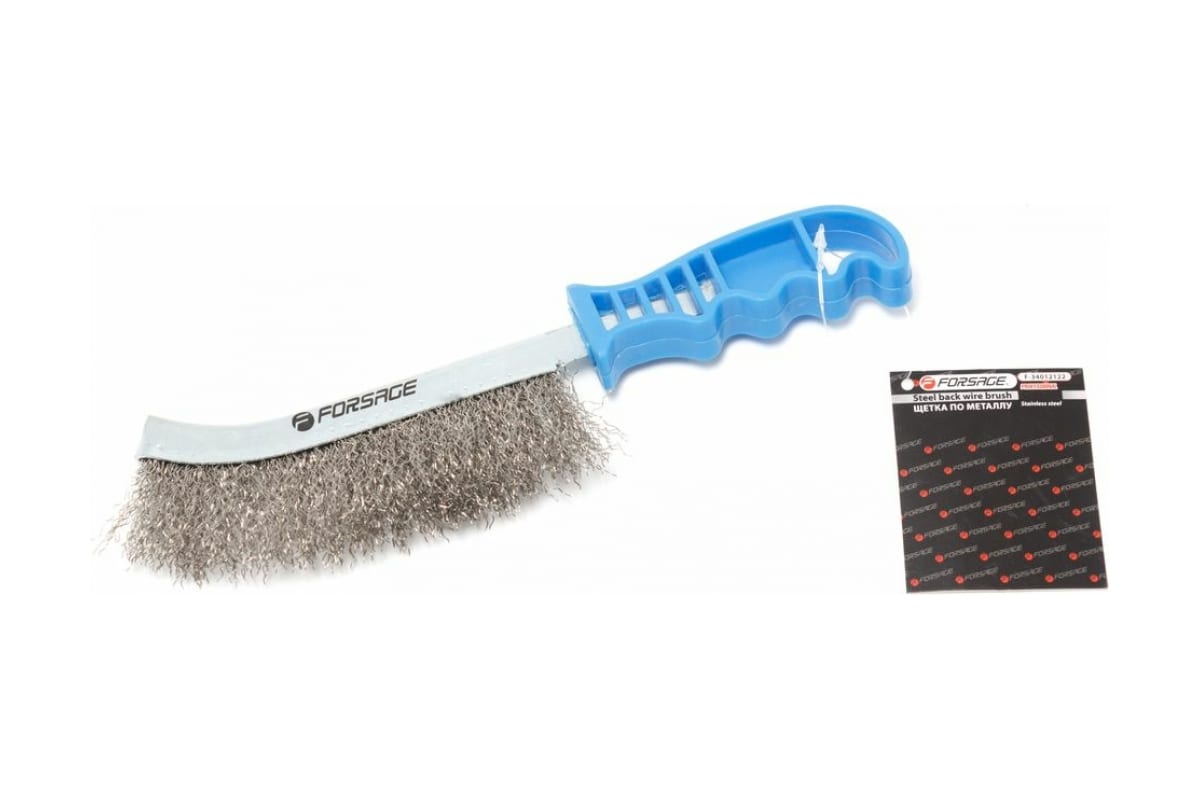 Щетка по металлу Forsage ручная в железном корпусе с пластиковой рукояткой 17414 F-34012122 представляет собой удобный инструмент для быстрой очистки металлических поверхностей. Проволока легко вычищает грязь, ржавчину, удаляет старую краску.