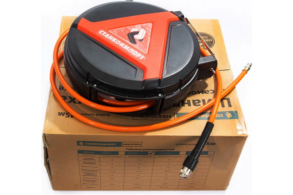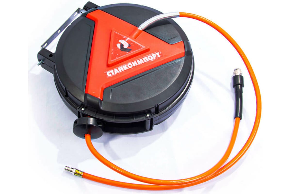 Шланг на самоскручивающейся катушке 8/12 мм, 10 метров СТАНКОИМПОРТ HR0812HPVC подает воздух от компрессора к пневматическому инструменту. Таким шлангом удобно пользоваться как в маленьких мастерских, так и на крупных СТО.