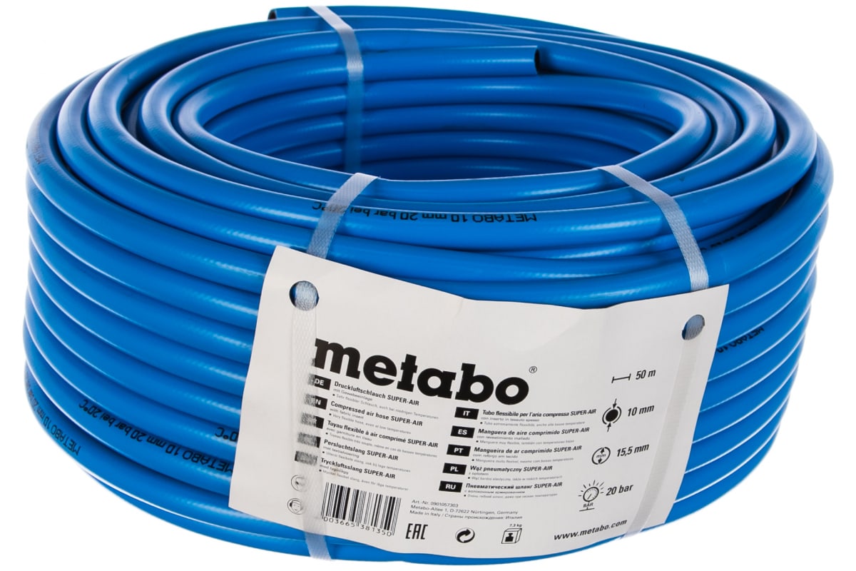 Шланг пневматический прямой SUPER AIR Metabo 0901057303 используется для подсоединения пневмоинструмента к компрессору. Шланг обладает хорошей гибкостью, что обеспечивает удобство при эксплуатации и продлевает срок службы оснастки.