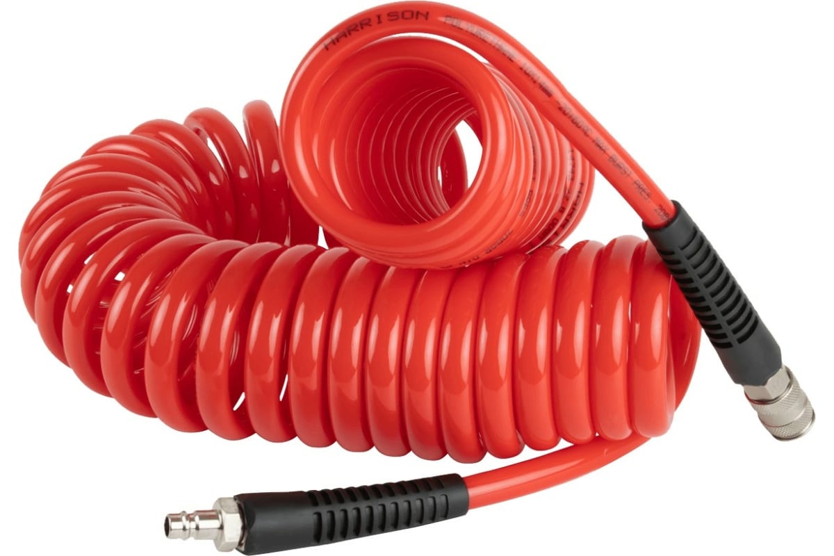 Шланг пневматический спиральный с БРС 15 м, 10x14 мм Harrison HRS-221015 предназначен для подачи сжатого воздуха от магистрали или компрессора к пневмоинструменту.