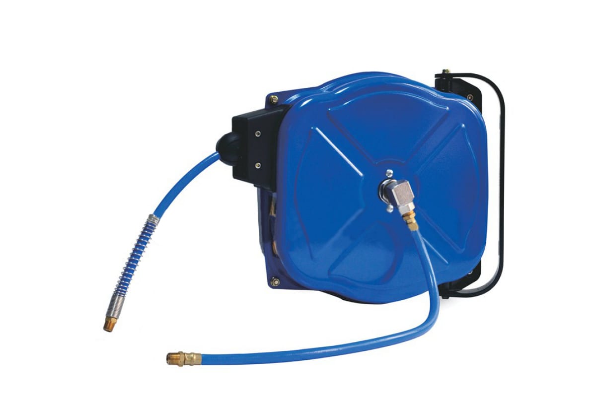 Шланг полиуретановый на автоматической катушке, 10х15 мм, 10 м, резьба 1/4” МАСТАК 681-10015HR служит для эффективного подвода сжатого воздуха к различному пневматическому оборудованию. Эргономичная конструкция катушки позволяет устанавливать её в любом удобном для пользователя месте, например, на стене (за кронштейн), на верстаке и т. п. Специальный фиксатор дает возможность закрепить шланг на необходимой длине, а по завершению эксплуатации поможет скрутить его обратно.