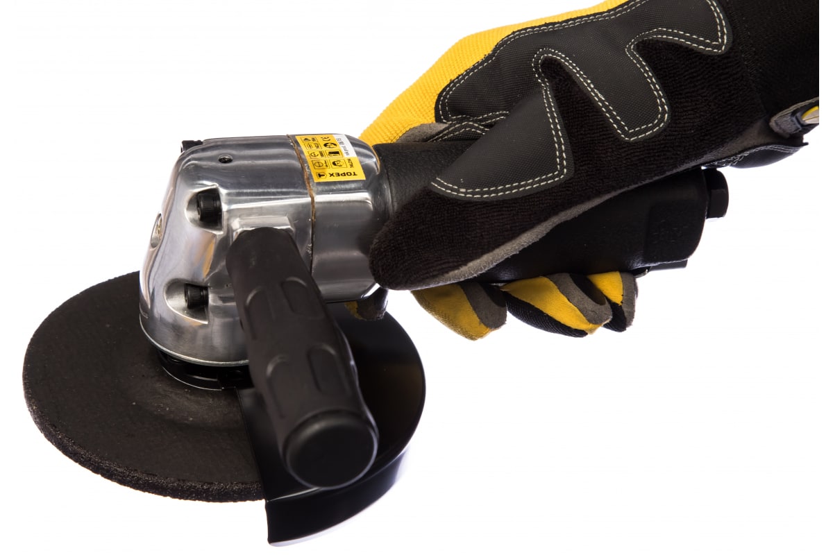 Шлифовальная угловая пневматическая машина TOPEX 74L214 специально разработана для отрезных и шлифовальных работ по металлу.
