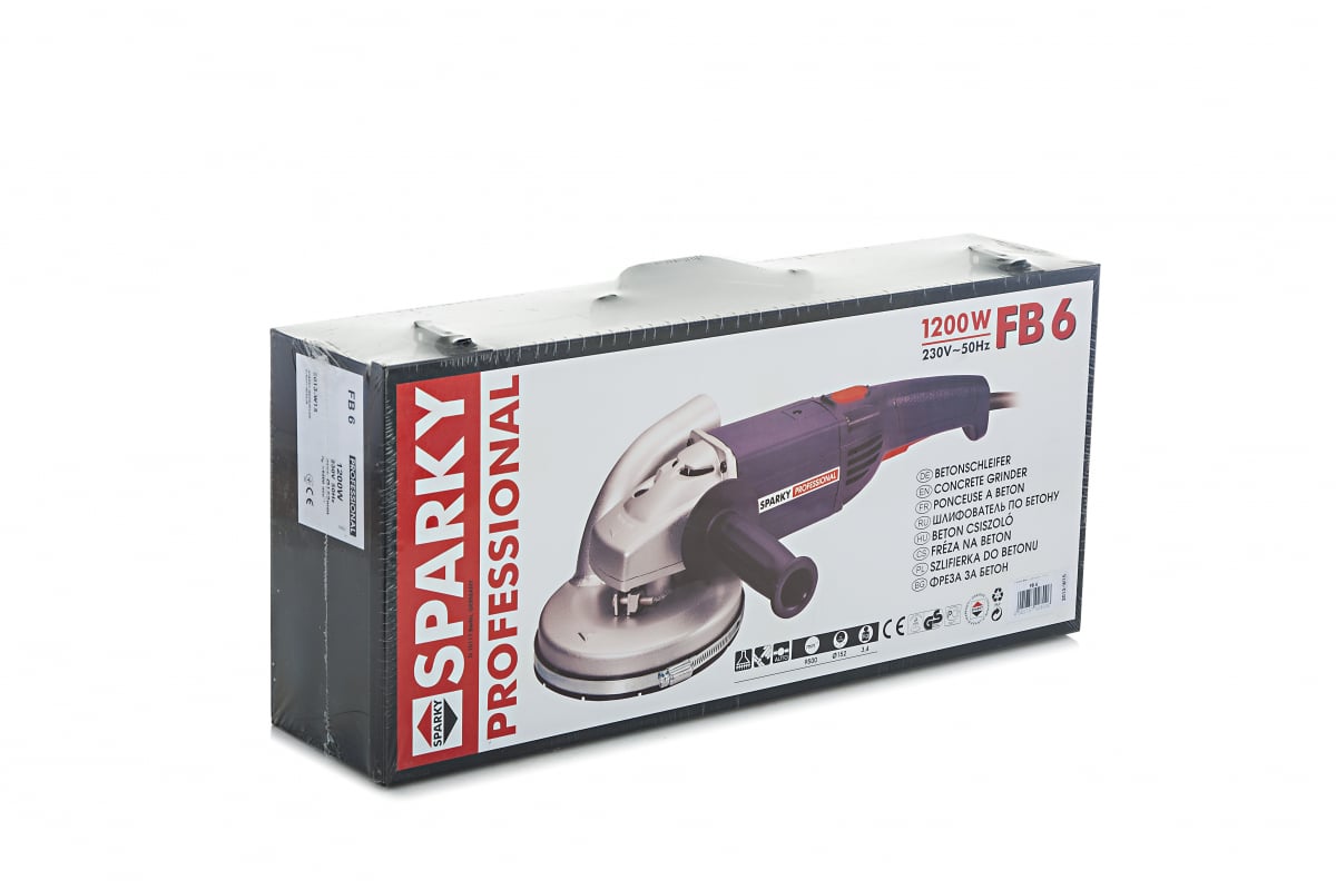 Шлифователь по бетону SPARKY FB 6 применяется шлифования каменных и бетонных поверхностей. Инструмент оборудован специальным патрубком для подключения системы пылеудаления. Редукторная коробка, защищающая внутренние детали шлифователя от повреждений, изготовлена из магниевого сплава. Вес инструмента составляет 4.1 кг. Для более удобного хранения и транспортировки в комплект поставки входит пластиковый кейс.