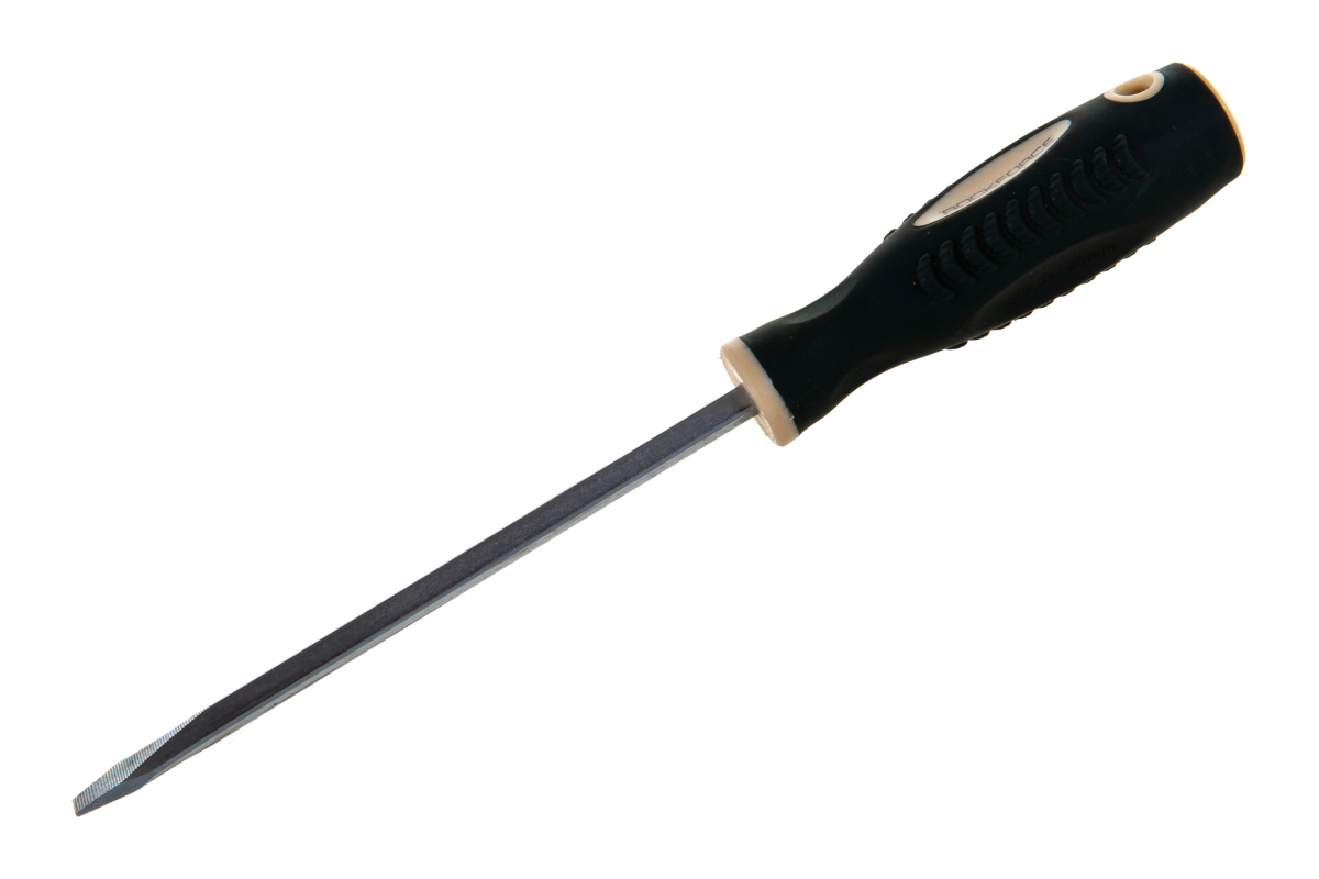 Отвертка отличается повышенной прочностью, так как имеет стержень из стали. Относится к классу профессиональных инструментов.