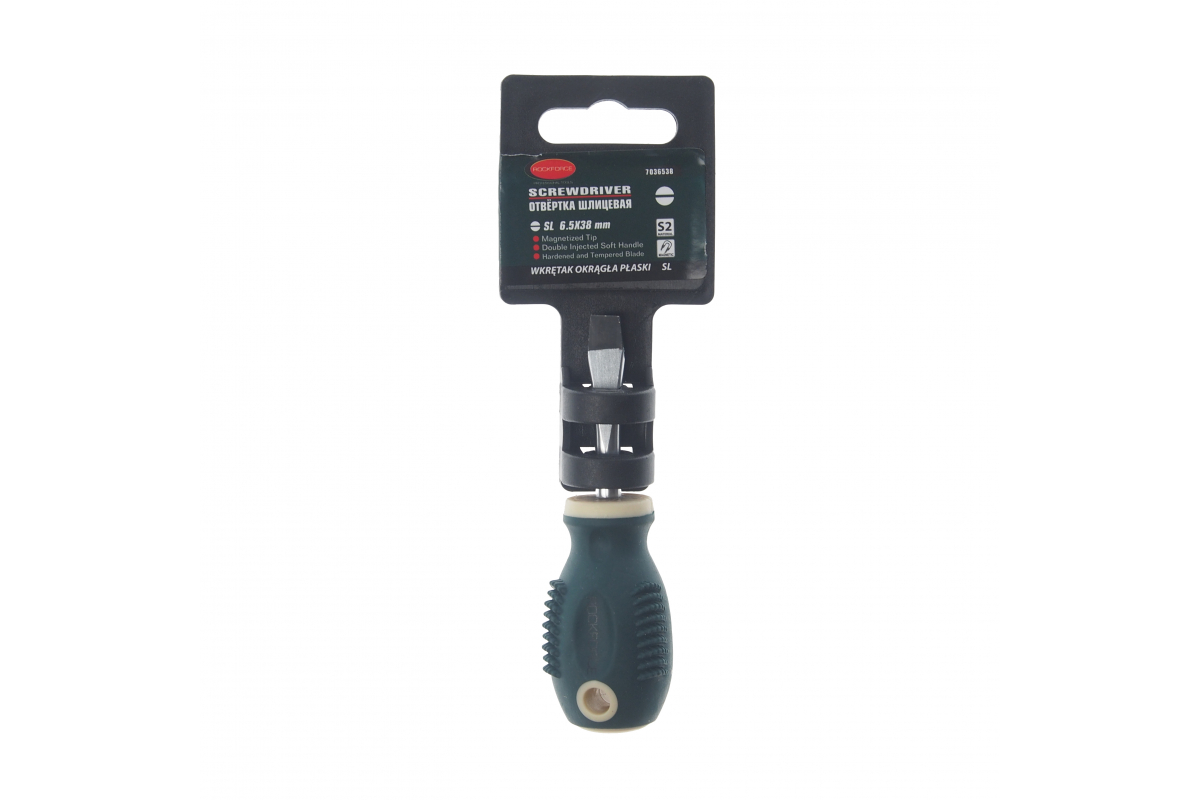Преимущества отвертки Rockforce RF-7036538- Шлицевая магнитная отвертка ROCKFORCE Profi S2 SL6.5х38мм на пластиковом держателе RF-7036538 отличается долгим сроком службы