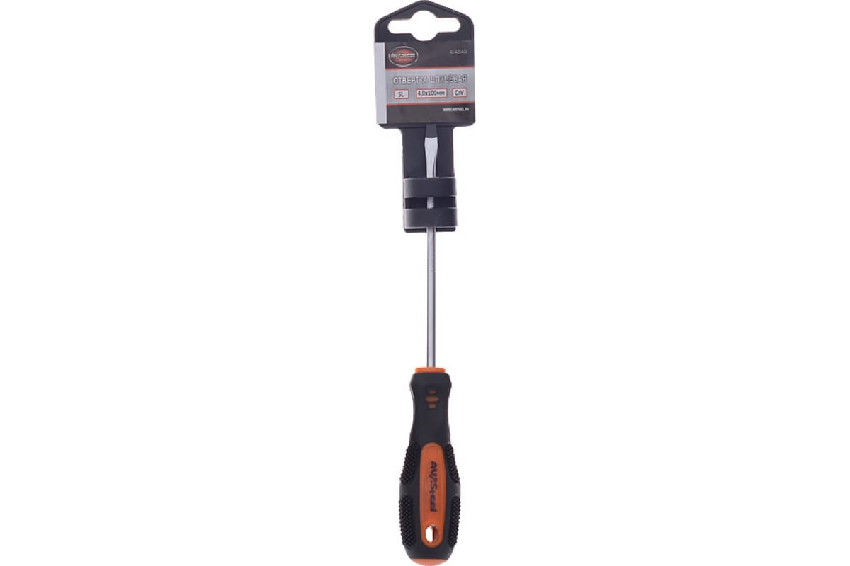 Шлицевая отвертка 4х0,8х100мм AV Steel AV-420404 - качественный и надежный инструмент, при помощи которого можно быстро отвернуть небольшой винт.